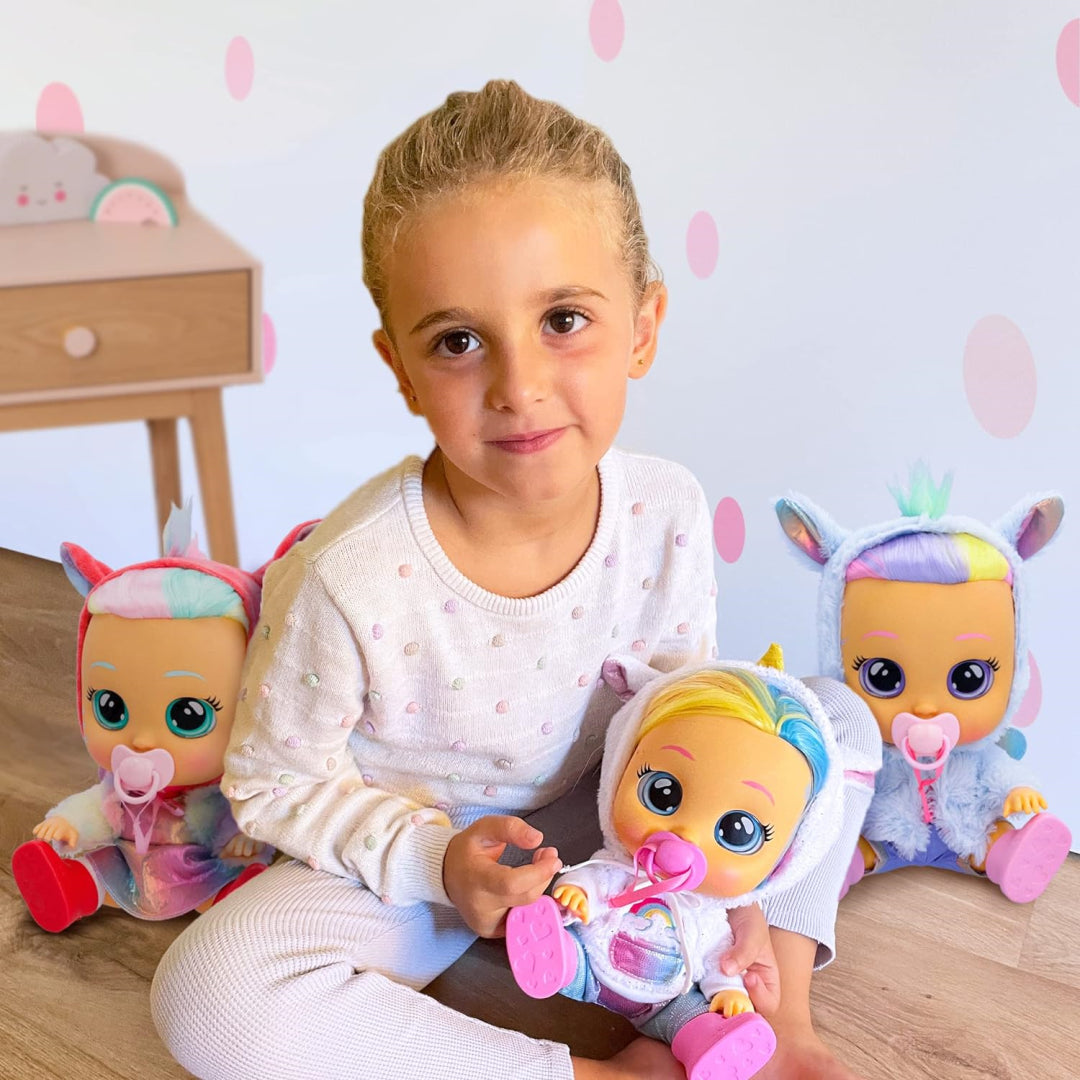 Check out our Dressy Fantasy Cry Babies. Dreamy with her glossy coloured hair and gorgeous large crystal eyes. Dreamy is quite lovely and soft to the touch, and she adores attention. She must be cherished, clothed, and handled as if she were a real baby.