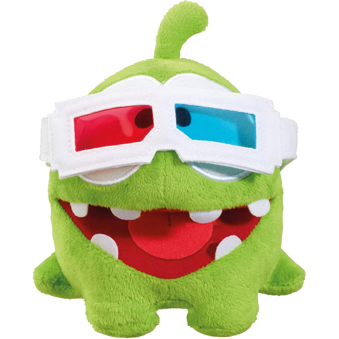 Om Nom, the candy-loving monster, is decked up in his finest and eager to play! The soft plush toy is decorated with items from the popular game 'Cut the Rope,' and it comes with 3D glasses attached!