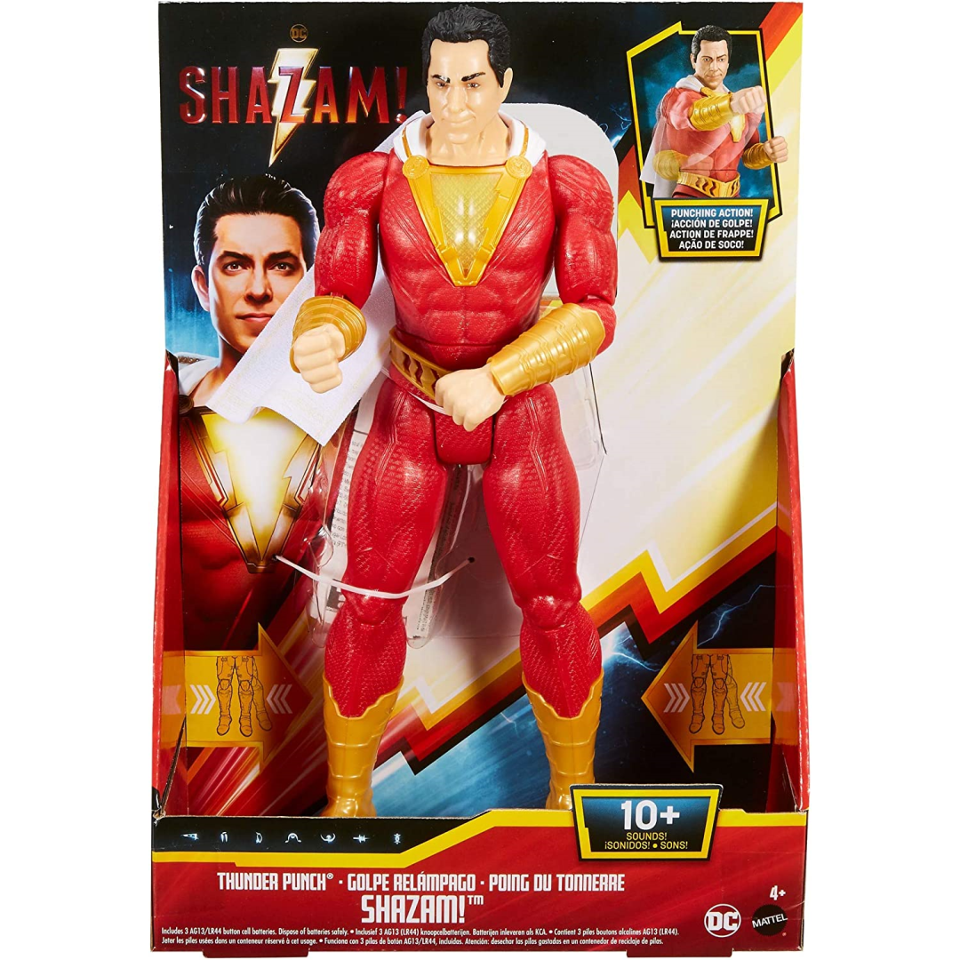 Shazam, you need to get genuine! Play out your favourite scenes from your favourite movies with this huge action figure that has characteristic motions and up to 20 original sound effects! The legendary Super Hero appears wearing his signature red combat armour and a hooded cloak made of fabric. When Super-Villains come into view, continuously squeezing his legs will cause him to unleash a barrage of super-strength punches, during which his chest will light up and he will make fighting noises.
