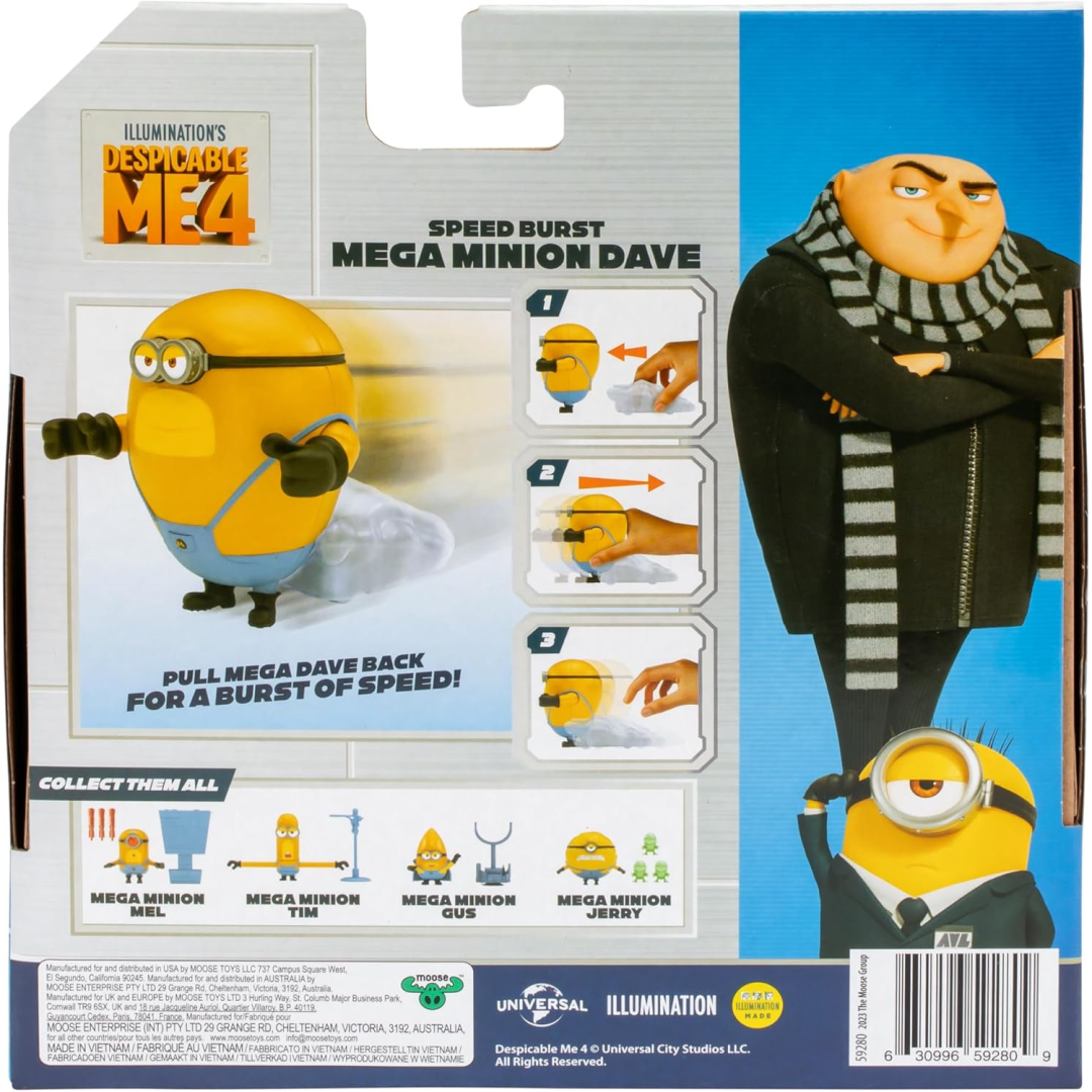 Ready, set, zoom! This Despicable Me Speed Burst Mega Minion Dave figure brings high-speed thrills straight from Despicable Me 4 into your home without the hefty price tag. Perfect for little hands that crave big action, simply attach Dave to his cloud, pull back, and watch him race forward with an impressive burst of speed that'll have the kids squealing with delight.