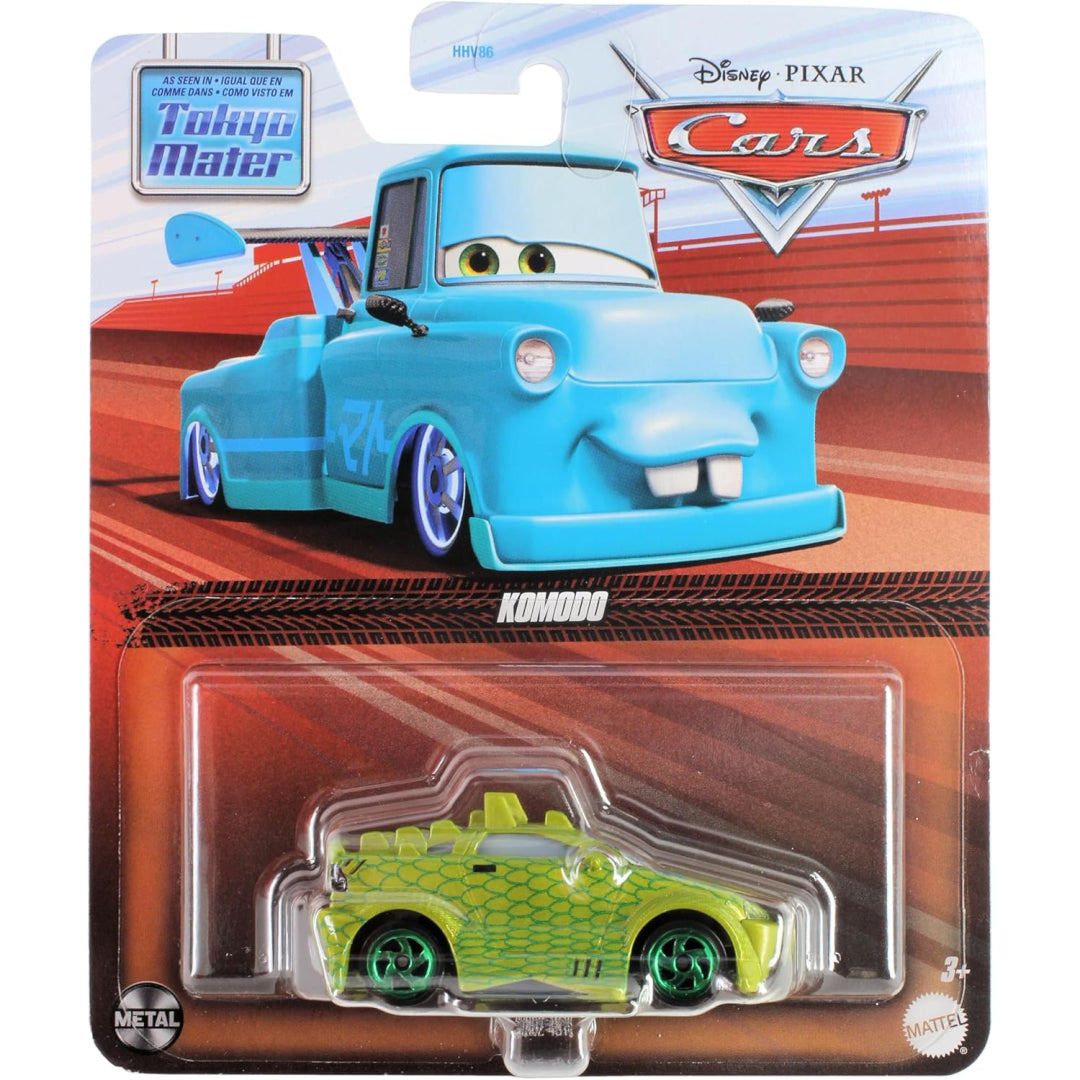 Komodo, a dynamic and speedy race car from Cars 3, is brought to life in this die-cast model, showcasing his vivid and intricate design. Ideal for children eager to reenact thrilling racing moments from the film or enhance their Cars 3 collection with an exciting new character, Komodo's striking appearance makes him a must-have addition.
