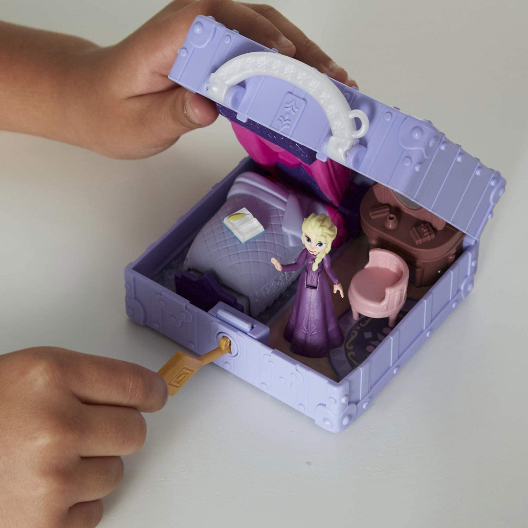 This Disney Frozen 2 Pop Adventures Elsa's Bedroom Pop-up Playset comes with a miniature Elsa doll that can be used to act out situations inside the movie-inspired bedroom that the playset depicts. The fresh and epic adventures featured in Disney's Frozen 2 served as inspiration for the Pop Adventures toy line, which has an engaging playset experience. When the child opens the case, they will get a kick out of seeing a well-known scenario materialise in front of their own eyes. This pop-up look is achieved by the material that the playsets are constructed out of, which is a flexible plastic that flattens out when the playsets are closed and expands when the playset is opened.
