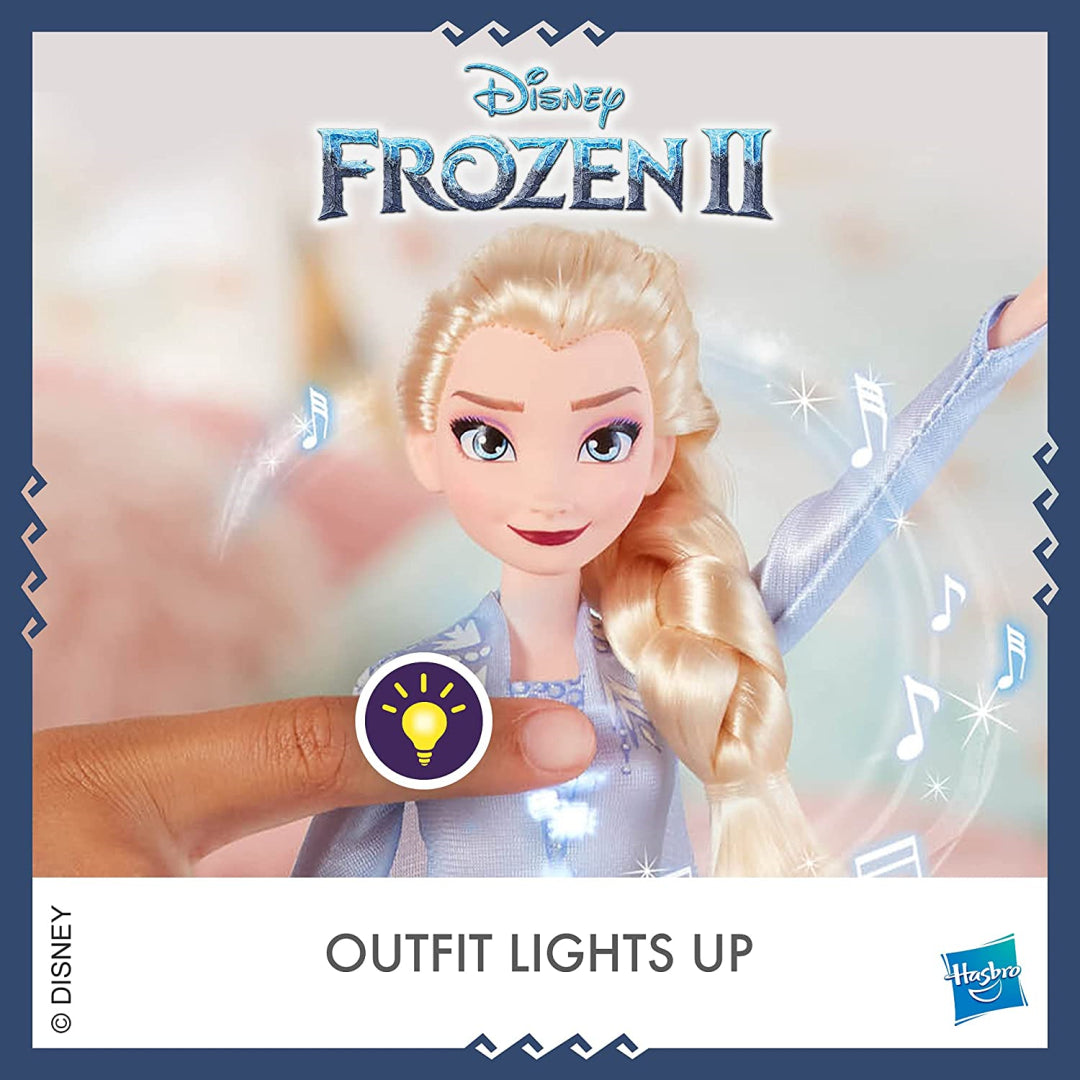 Press the button on Elsa's bodice to hear her sing "Into the Unknown" - the hit song from Frozen 2. Watch as her dress magically lights up during the performance, creating a truly magical moment. The doll comes with removable boots and is ready to play straight from the box - perfect for recreating Elsa's journey of self-discovery and adventure.