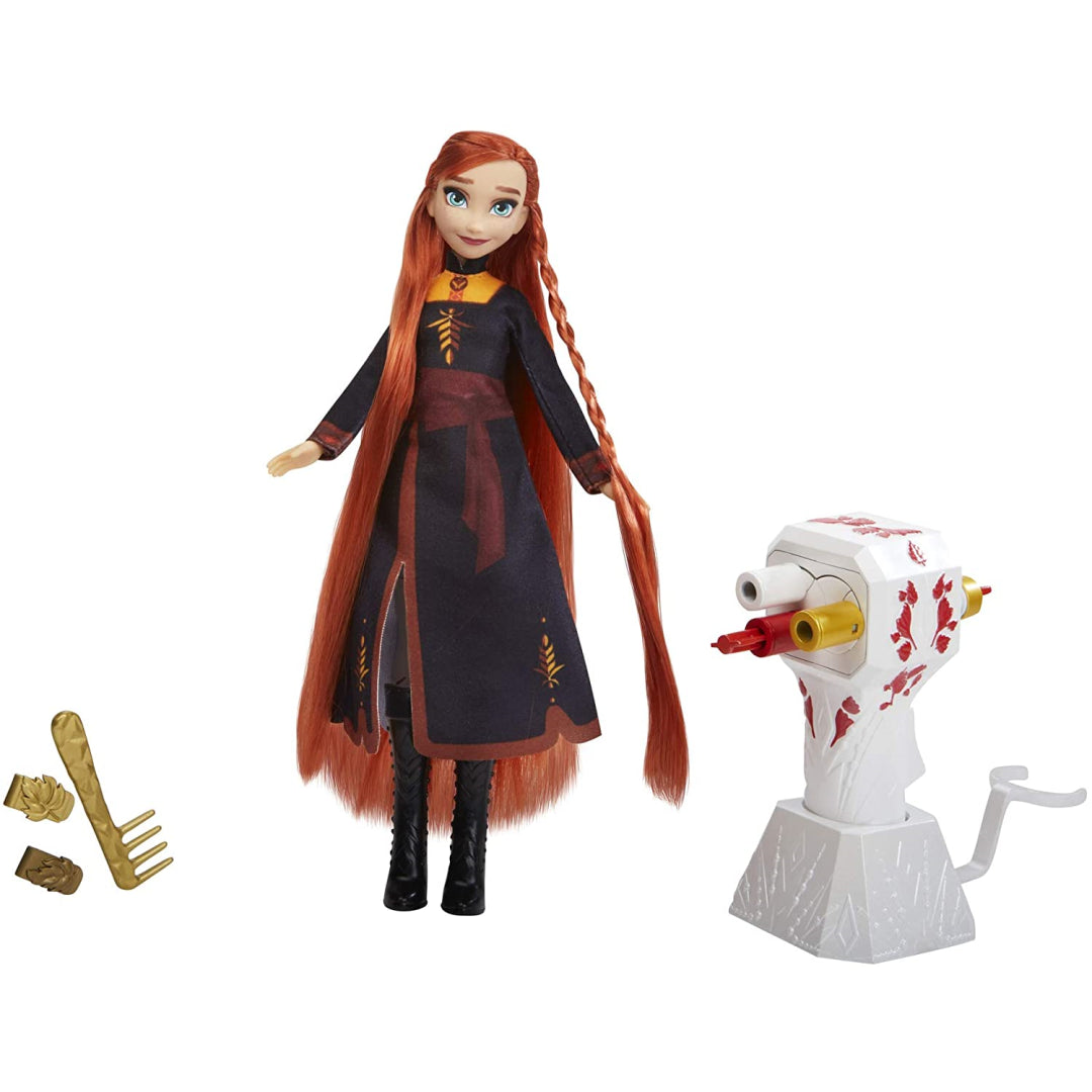 Create magical hairstyling moments with this Disney Frozen 2 Anna doll. Perfect for budget-conscious parents wanting quality playtime, this fashion doll features Anna's signature extra-long red hair ready for endless styling possibilities. The doll comes dressed in a striking black outfit with beautiful red and orange details, just like in the movie. The included mechanical hair braiding tool needs no batteries, making it both eco-friendly and instantly ready for creative play.
