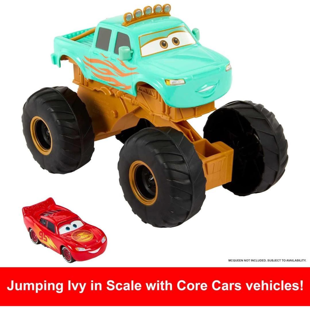 With Circus Stunt Ivy, a monster truck that can do stunts, kids can experience the thrilling circus episode of the Disney+ series Cars On The Road! Prepare to witness Ivy do her amazing feat and jump into the air by pressing the car down and pushing ahead. For leaping over other die-cast cars (separately available), this enormous plastic vehicle is ideal. Youngsters may try stunting; how many other vehicles can the beloved character leap over?