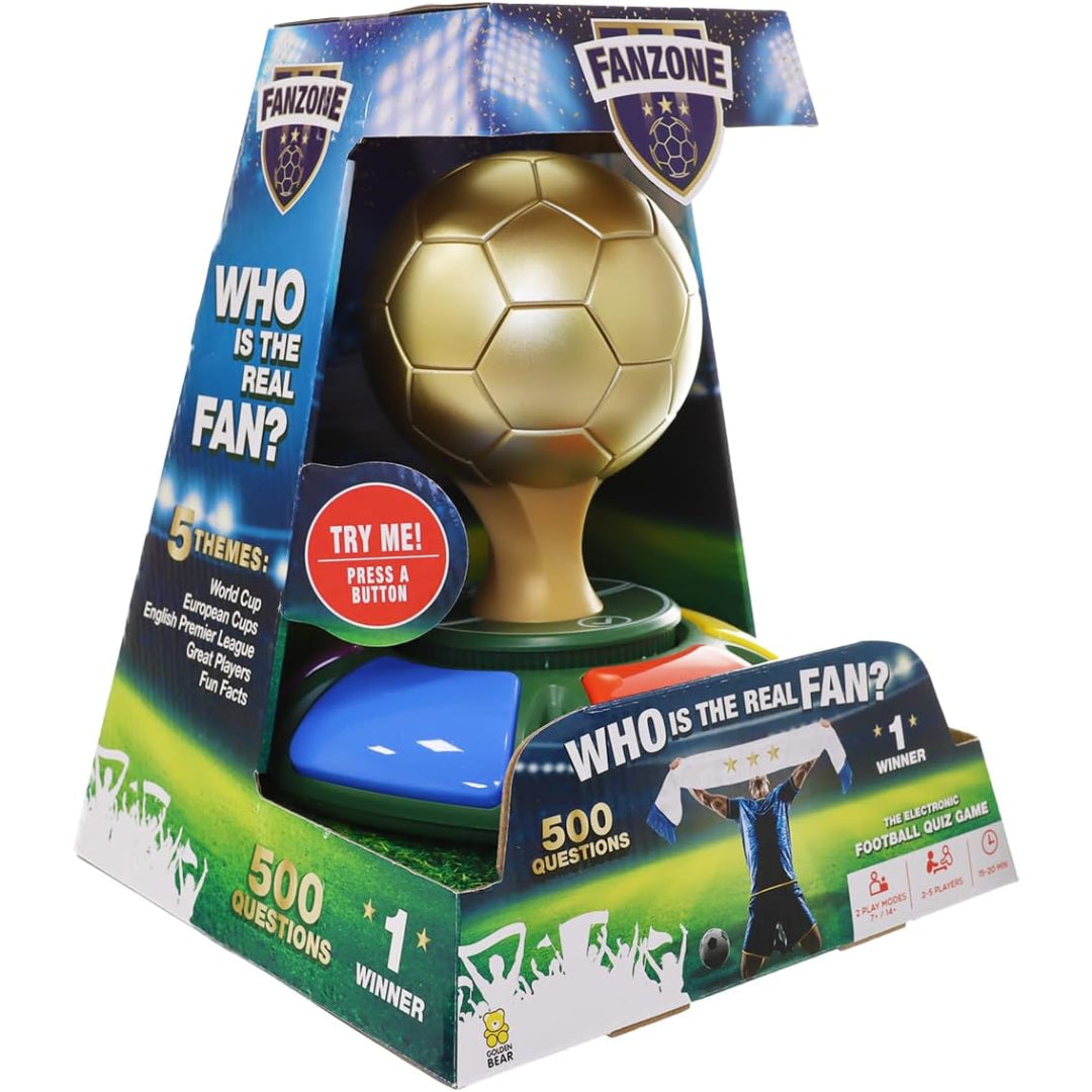 Perfect for busy families who love a bit of football fun, Fanzone brings the excitement of match day knowledge to your living room! With 500 brain-teasing questions across five categories, this interactive trivia game lets everyone join in the sporting action. Hit your buzzer, choose true or false, and race to be the first to reach 20 points - but watch out, wrong answers give your opponents the advantage!