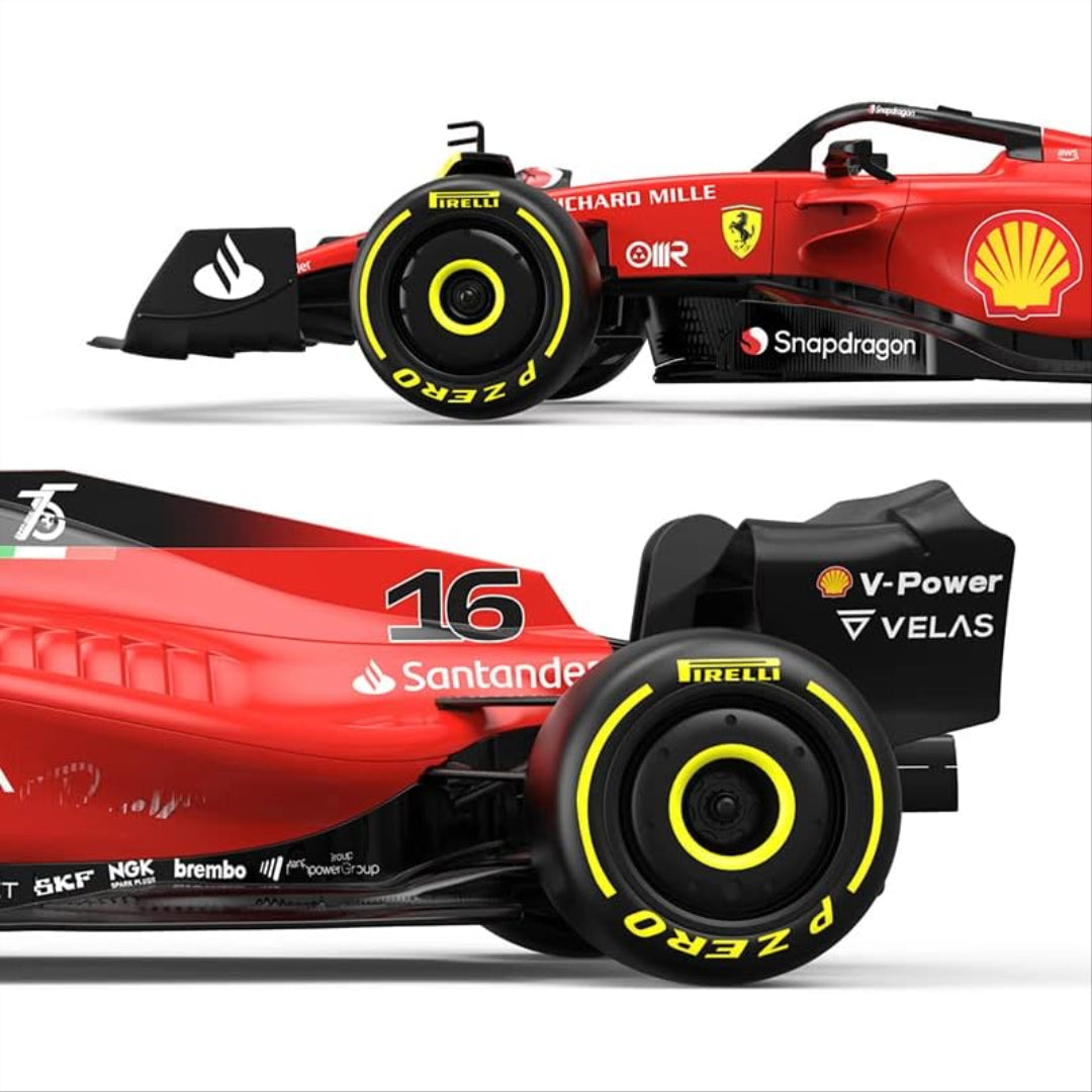 Get ready to bring the thrill of F1 racing home with this incredible Rastar Ferrari F1-75 remote control car! This 1:18 scale model is an officially licensed replica of the actual 2022 F1 Championship car driven by Charles Leclerc and Carlos Sainz Jr.