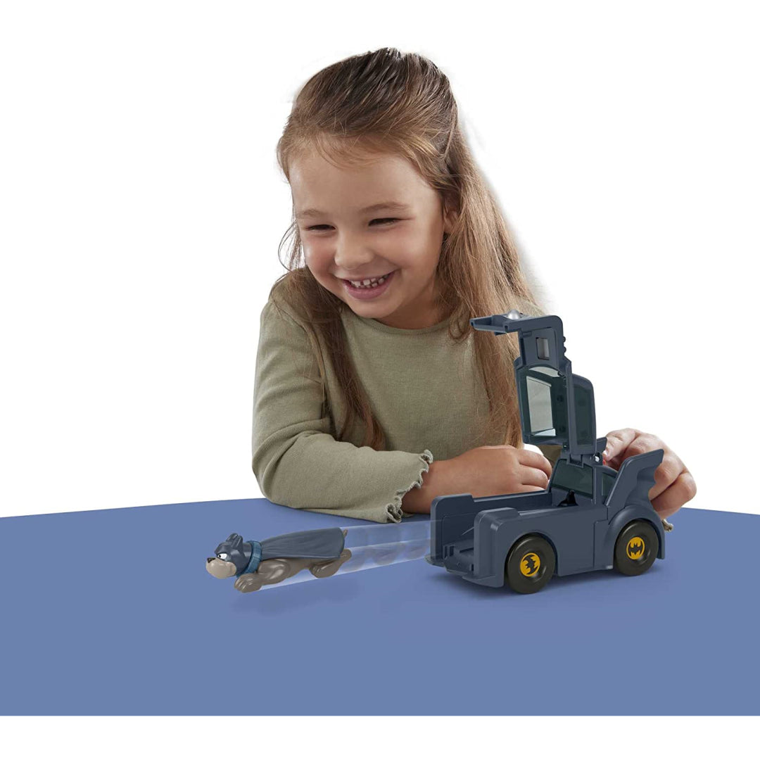 Let your little heroes jump into action with this DC Super-Pets Super Launch Ace set! Perfect for imaginative play sessions that won't break the bank, this exciting toy brings the movie magic home. Your little ones can zoom Ace the Hound around in his Batmobile-style vehicle, patrolling the city just like in the film. When trouble strikes, press the special launch button to send Ace soaring into battle!