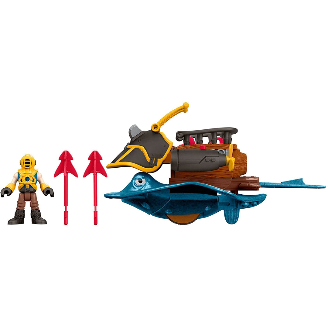 Hello there, you land lovers! Be wary, since these waters are known to have a large number of adversaries. However, Captain Nemo is armed and ready for battle to protect his land with this fully stocked stingray. Move the stingray along with your finger to make his wings flap as if he were really swimming. Then, fling adversaries to the side by pushing the Power Pad in a back-and-forth motion to whip the stingray's tail. Ouch! In the event that this is ineffective, it is time to blow them out of the water! Ready aim fire! To launch the missiles, you must first press the button on the launcher. That'll teach them not to mess with Captain Nemo, that's for sure! Your child's inner buccaneer will have a blast concocting exciting new sea-faring exploits with this pair.