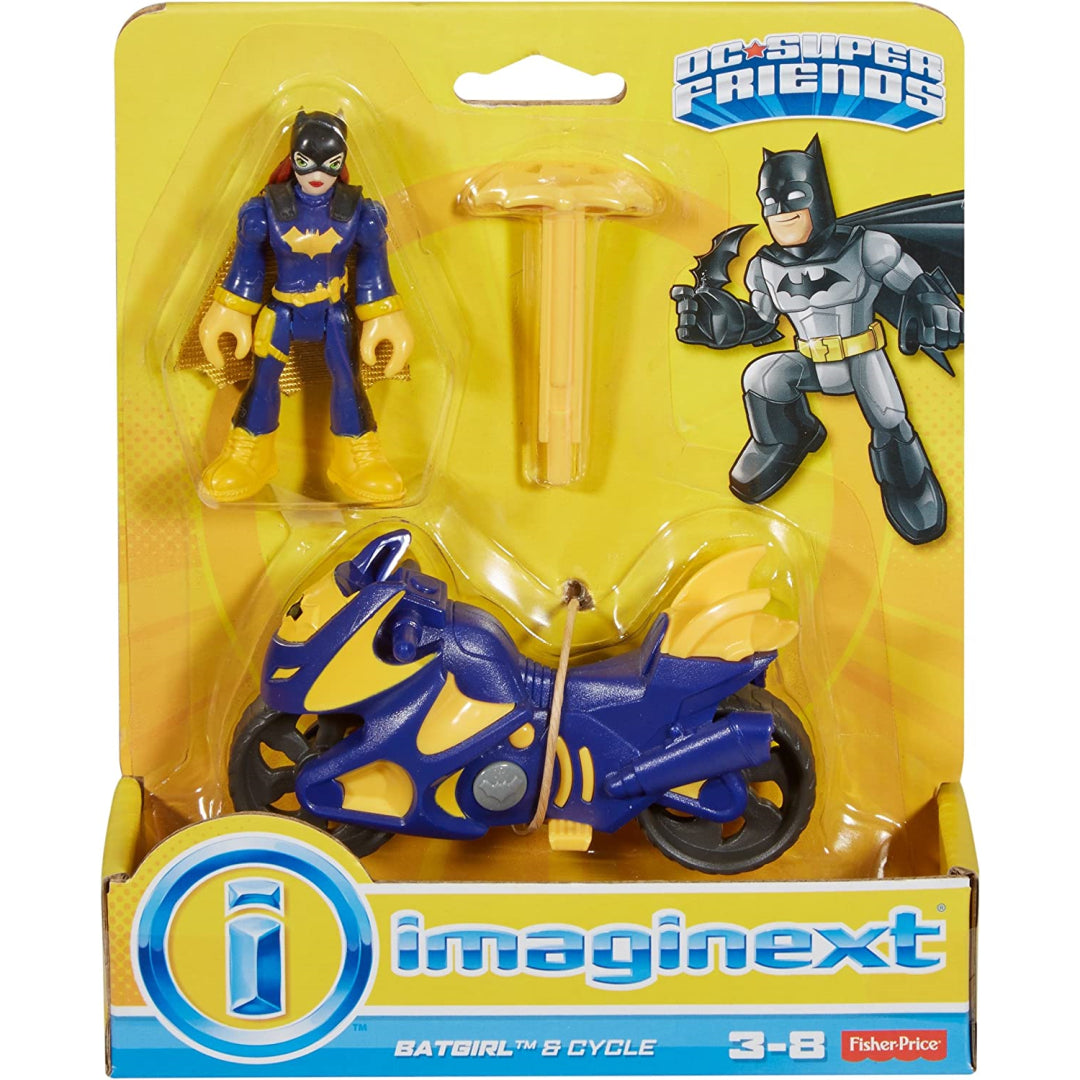 The criminals of Gotham City had better watch out! Batgirl is scouring the area on her toy motorcycle as she speeds around, looking for any indication of potential trouble. In the event that she does find it, she is ready for it. She can keep the city safe for one more day with the press of a button, using her projectile launcher to take out the bad guys and keeping the city secure. The Imaginext DC Super Friends Batgirl & Cycle figure pack is an excellent tool for igniting children's imaginations and assisting them in the creation of new exciting adventures involving the fight against crime on a daily basis. Imaginext... Activate Your Sense of Wonder!