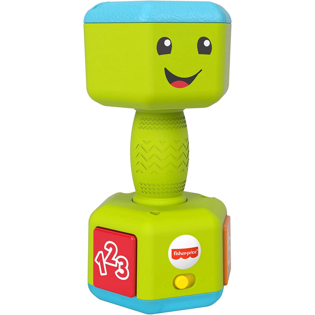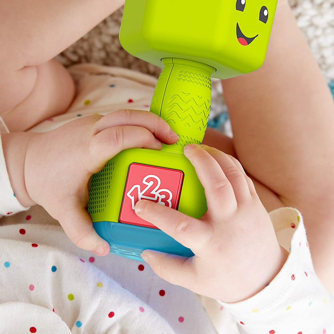 For early role playing fun, there is a pretend dumbbell that plays delightful music, noises, and has colourful lights. Pushing buttons brings on lights, activates amazing gym music, and teaches songs and phrases about numbers, contrasting concepts, and good practises.