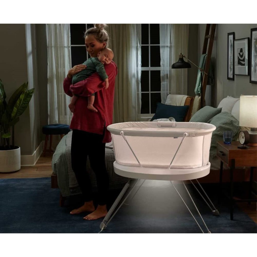 Little ones will to drift off to the soothing sensory experiences provided by the bassinet. The soft amber basket nightlight saves them from harsh overhead lighting when they're snuggling down. The perfect gift for babies who can't yet push up on their hands and knees, pull up or sit unassisted. Help them get vital sleep in their early days so they can rest, relax and grow.