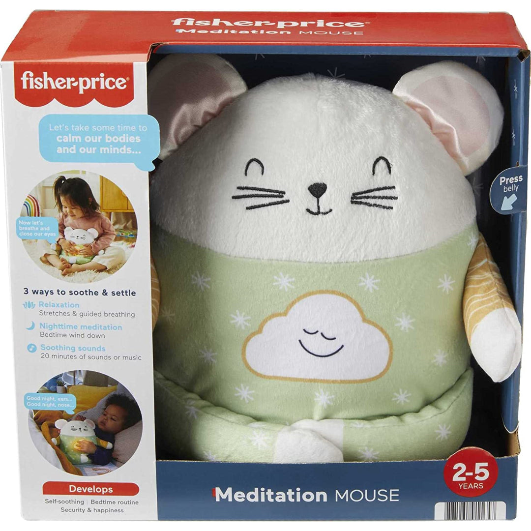 Meet your new bedtime bestie from Fisher-Price - the Meditation Mouse! This super-soft plush companion is perfect for helping little ones wind down and drift off to dreamland without any fuss. With its cute PJs, embroidered face, and mix of soothing textures, it's an adorable addition to your bedtime routine.