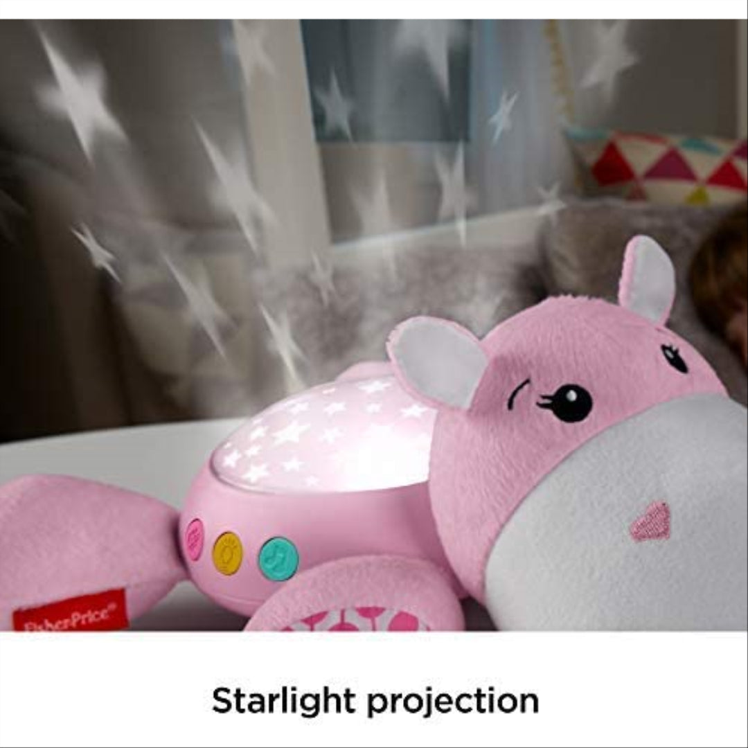 As soon as you place this adorable, plush hippo soother on a dresser or tabletop, it will fill the room with starry lights and up to 30 minutes of peaceful lullabies, natural noises, and white noise. Your infant will be able to drop off to sleep in no time with this cosy companion!