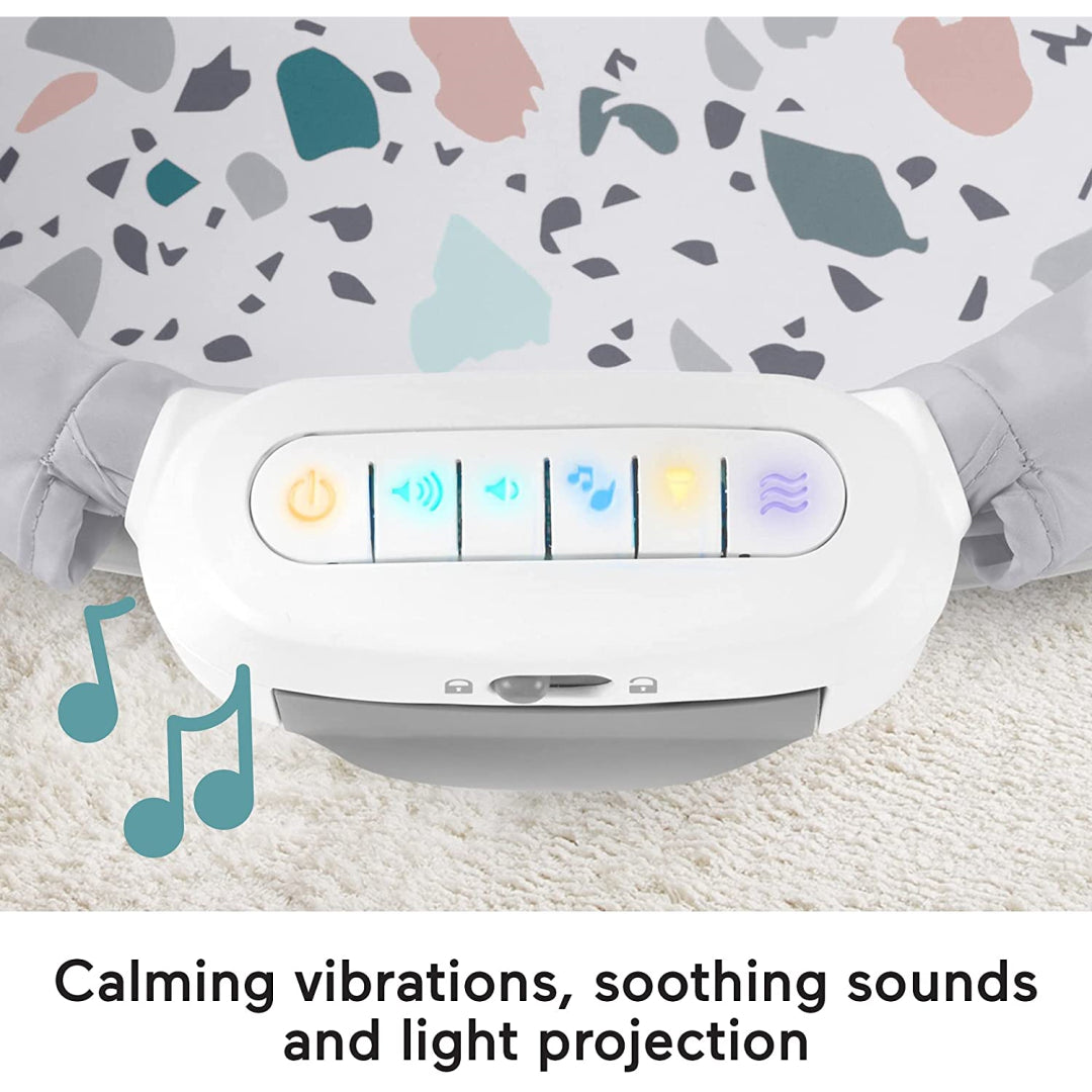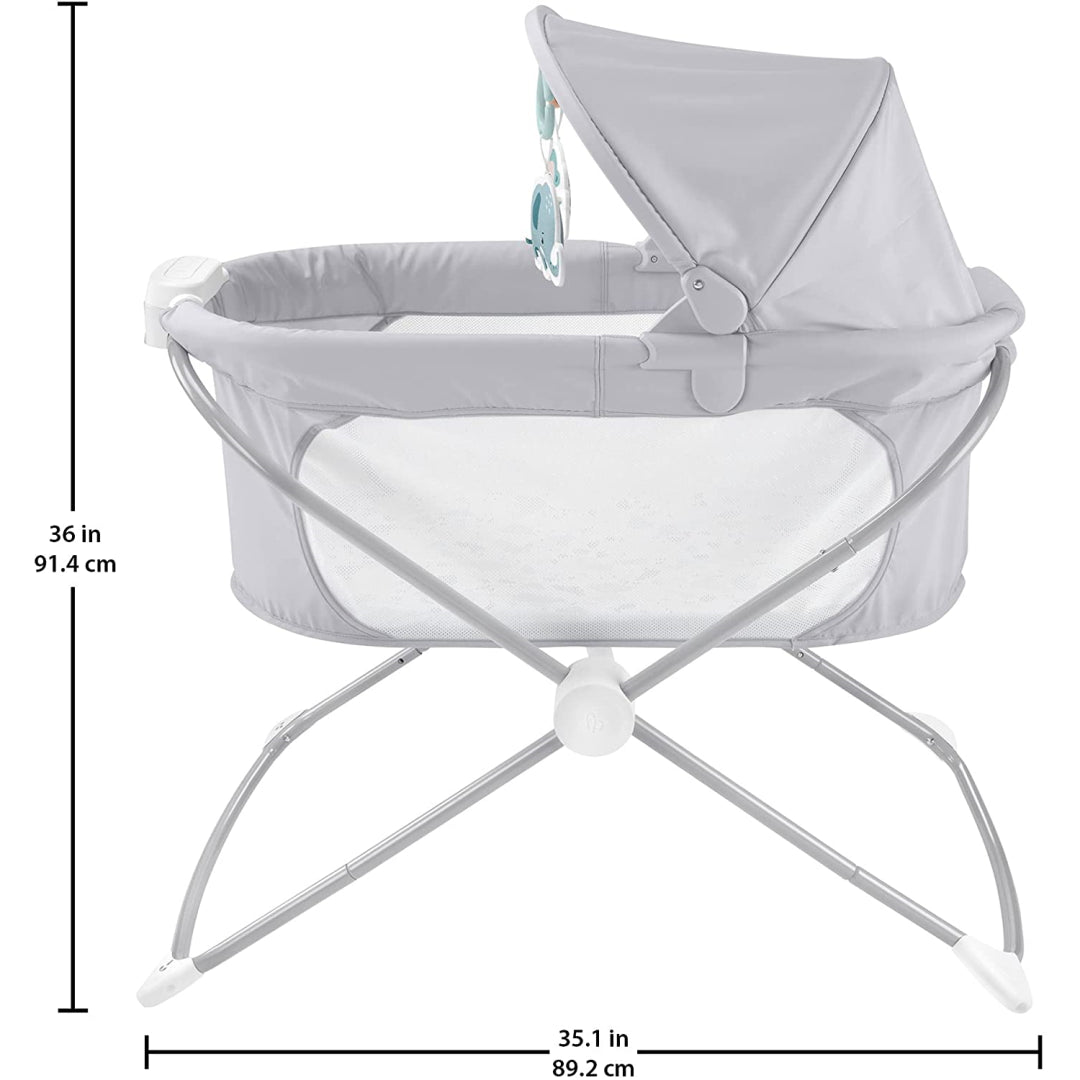 With soft vibrations, soothing music, noises, and starry lights, create a tranquil cocoon for baby. It's simple to put together: simply unfold the bassinet and push the switch into position to lock it in place. The bassinet folds flat (under 6 inches) to fit into even the tiniest of places. Toggle between rocking and stationary mode by turning the feet.