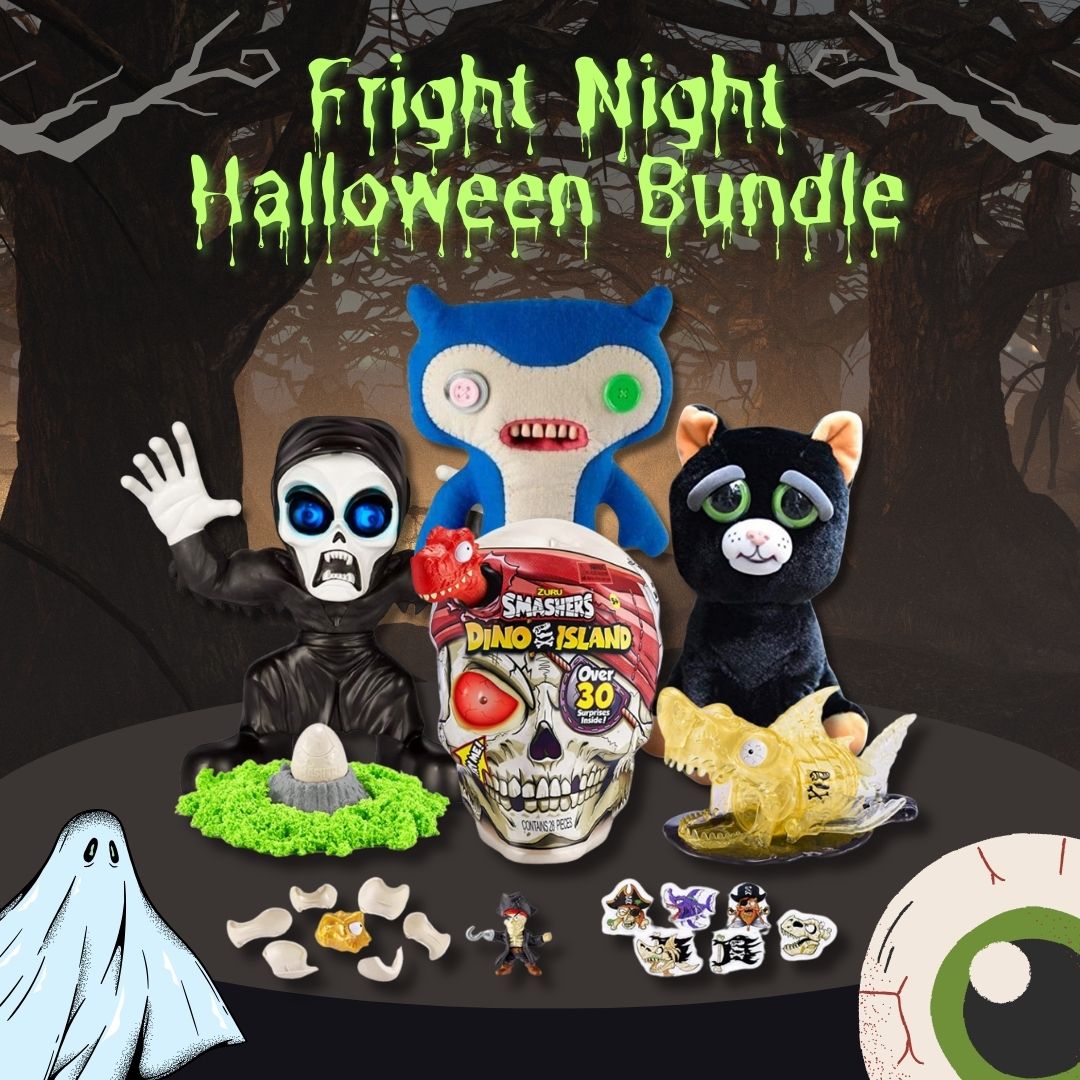 This Fright Night Halloween Bundle combines creepy plushes, monstrous surprises, and interactive scares - everything kids need for a fun, spooky celebration. From scary expressions and screaming ghouls to smashing skulls, it’s the perfect mix of fright and delight.