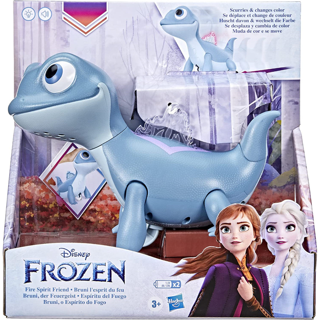 Bring the magic of the Enchanted Forest home with this interactive Bruni salamander from Disney's Frozen 2. Perfect for little ones who love magical play, this adorable salamander friend responds to motion with flashing red lights and various sounds, just like in the film. When your child gently pats Bruni, they'll be delighted to see the lights transform to a mesmerising cool blue - just like when Bruni meets Elsa!