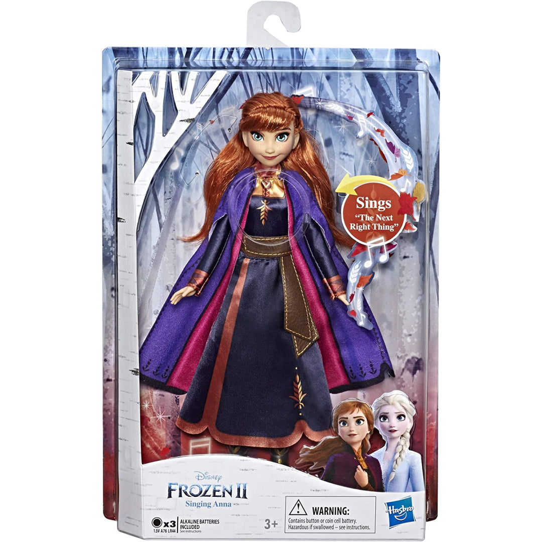 The Anna toy is dressed in a stunning black dress with purple and pink details, as well as boots that can be removed. Also, keep an eye out for the singing Elsa doll that was modelled after the character in Disney's Frozen 2 (sold separately). ), to sing along to songs that are included in the movie while envisioning situations with Arendelle's beloved sister combo, Elsa and Anna!