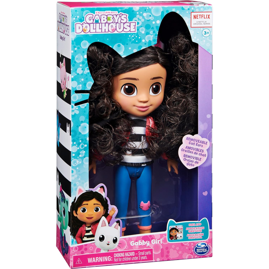 Your little Gabby's Dollhouse fan will adore this adorable 20.3cm Gabby's Dollhouse Gabby Girl doll, complete with her signature removable cat ears! Perfect for creative play without breaking the bank, this poseable doll features Gabby's classic outfit from the show - comfy trainers, jeans with a cute kitty patch, and a fabric top that matches the character perfectly.
