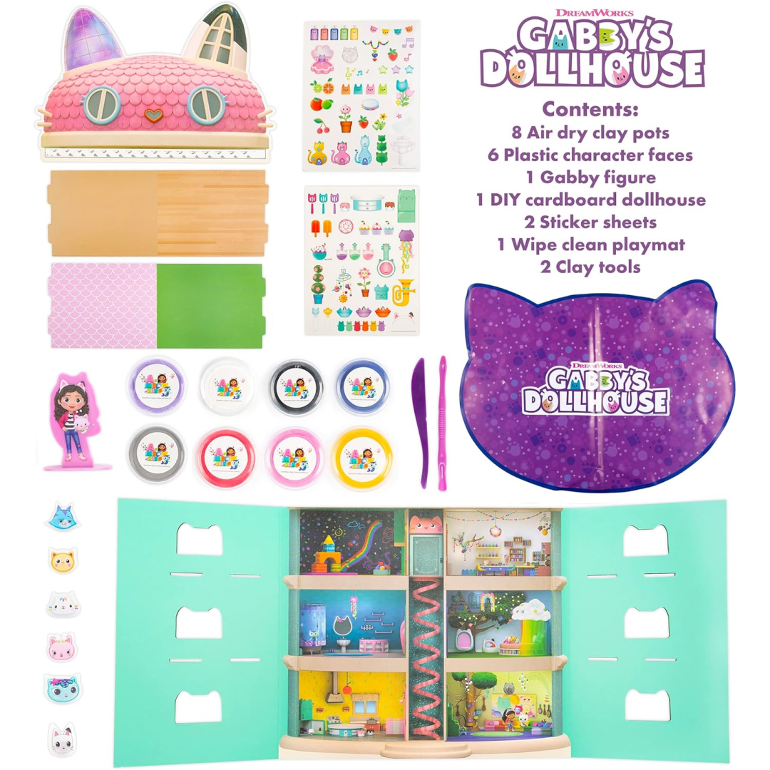 This Gabby's Dollhouse Set Is not just a Dollhouse, It's a complete craft Kit For kids. Bring out your child's creativity with air dry clay and modelling tools included for endless fun. The doll's house adds an extra layer of fun serving as both a playhouse and a canvas for your child creations. Decorate the house with crafted clay furniture, or create tiny clay inhabitants.