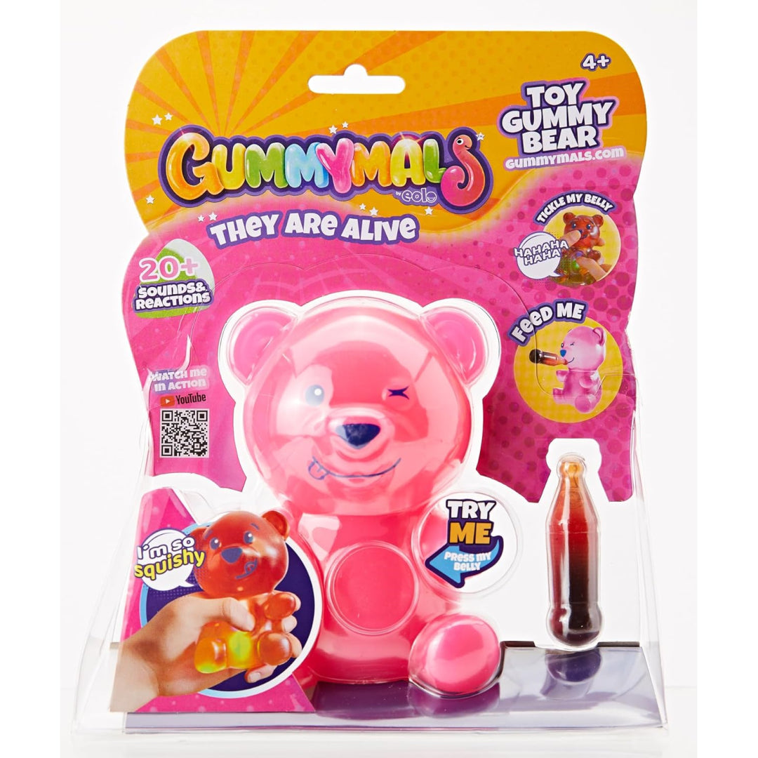 Meet your child's new best friend - the Pink Gummymals Squishy Interactive Pet Bear! This adorably squishable companion comes packed with 10 different reactions and sounds, making playtime more engaging and fun. Just like real gummy bears, these cuties are soft to touch and respond with giggles, burps, feeding noises, and even sweet little yawns when it's time for a nap.