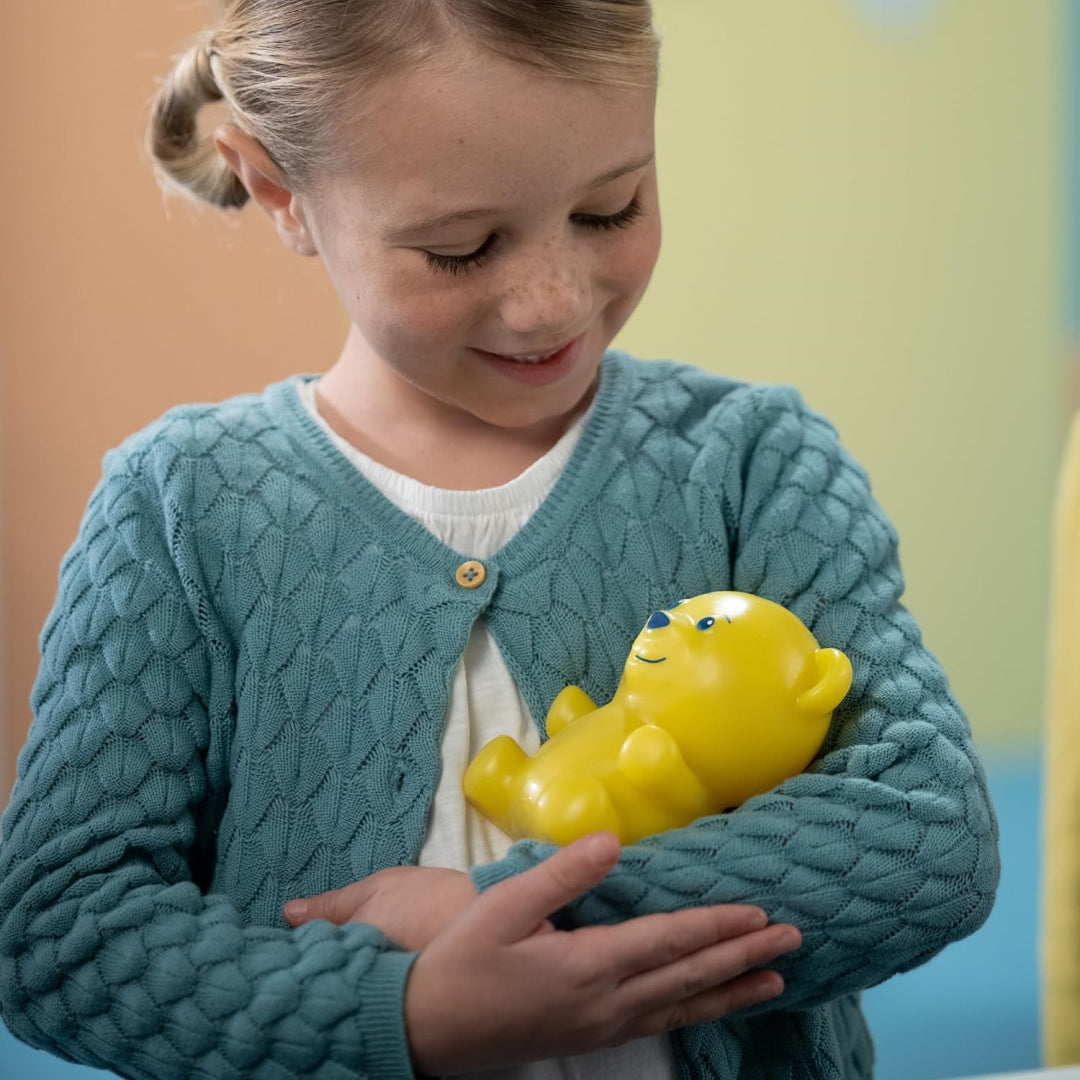 Meet your child's new best friend! This adorable Gummymals interactive yellow bear is packed with personality and over 20 fun reactions. Perfect for little ones who love nurturing play, this squishy companion responds to feeding, petting, and even bedtime with adorable yawns. Your kids will giggle with delight at the silly sounds including laughs, burps, and even cheeky farts!