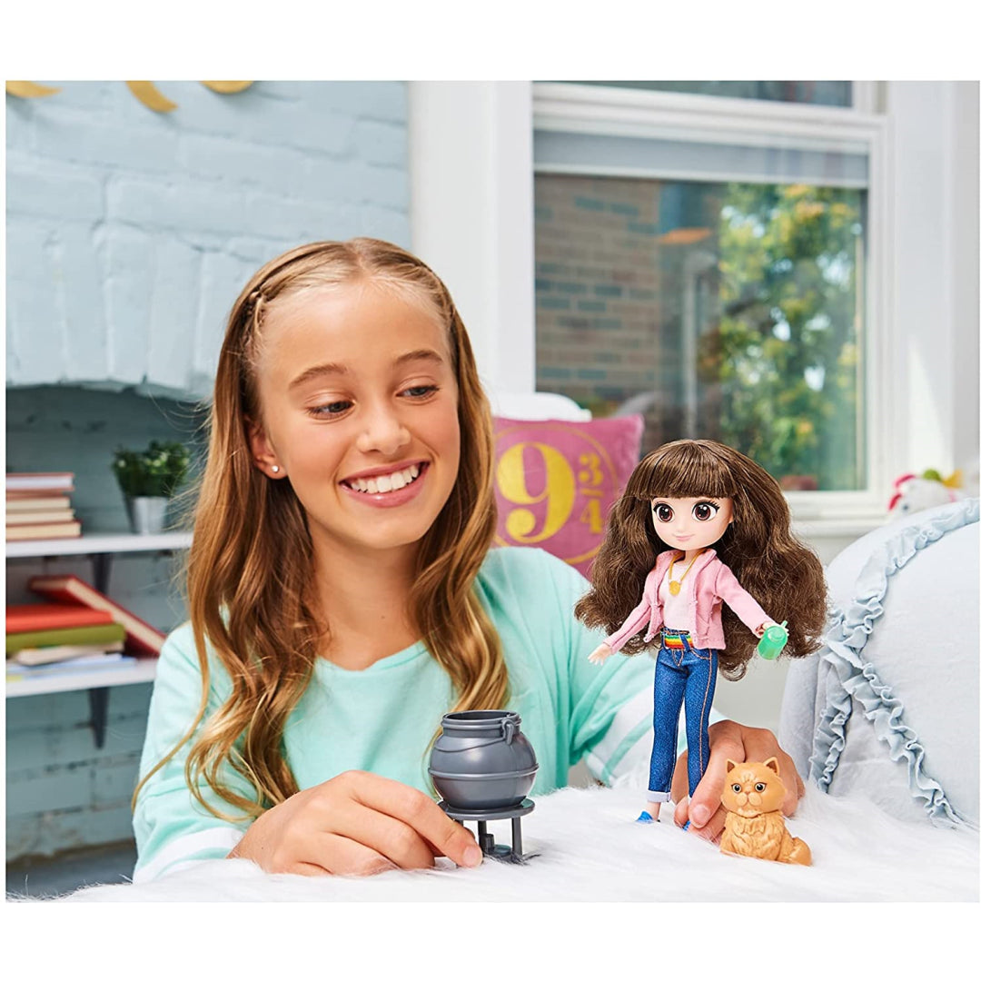Your little witch can recreate favourite magical moments with the included accessories - a wand, Time-Turner necklace, potion bottle, cauldron, and even Crookshanks the cat! The doll has five points of articulation and can actually hold her potion bottle, making playtime even more interactive.
