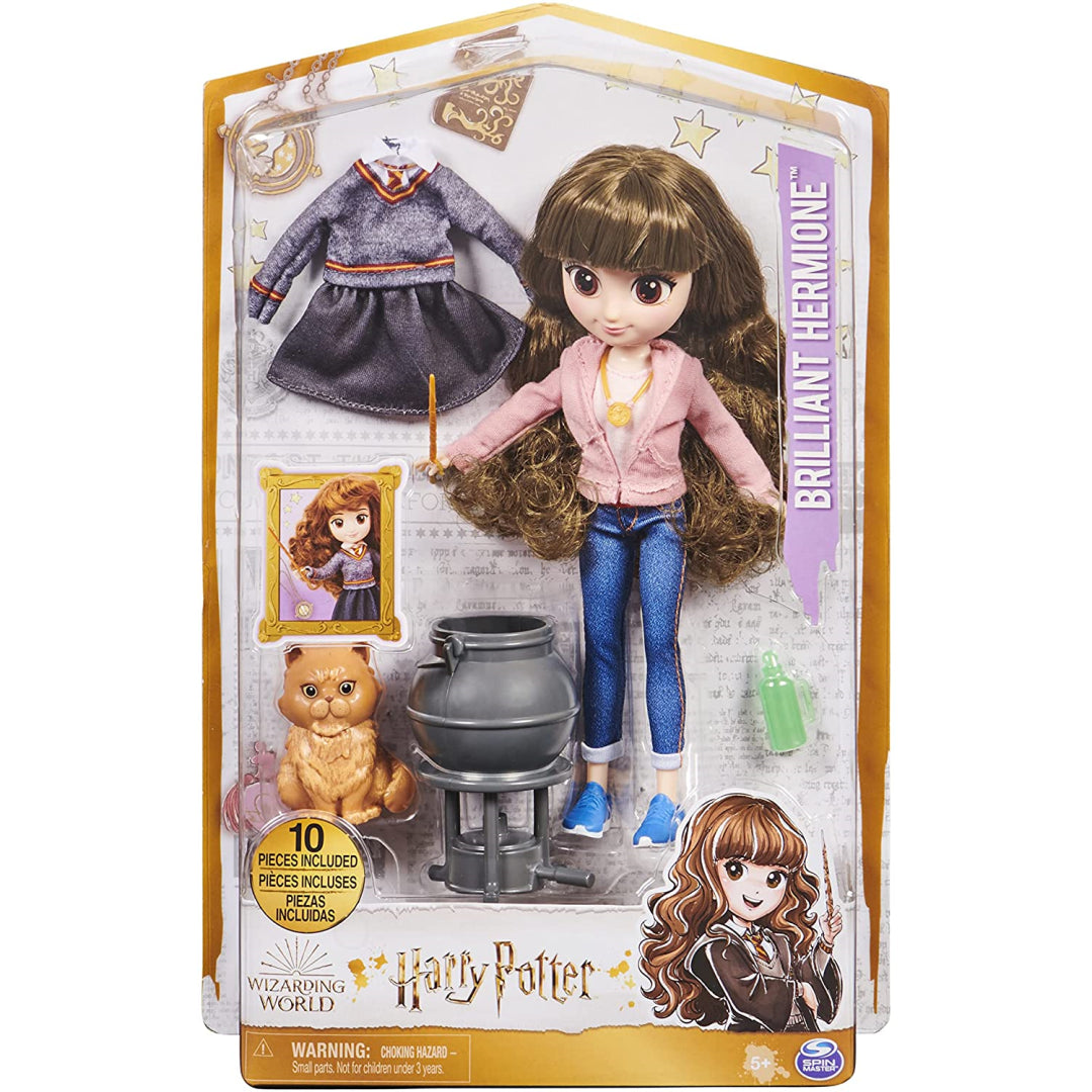Bring the magic of Harry Potter into your home with this delightful 8-inch Brilliant Hermione doll. Perfect for imaginative play, this detailed doll features Hermione's signature extra-long wavy hair and comes with two outfit choices - her casual pink sweatsuit from Prisoner of Azkaban and her classic Gryffindor uniform.