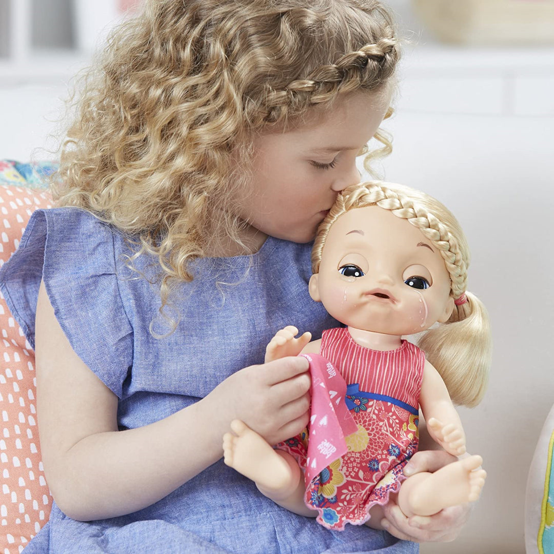 Baby snuff allows children to engage in imaginative role-playing as medical professionals. The adorable baby doll has several capabilities, including the ability to communicate, weep "genuine" tears, respond to her accessories, drink from her juice bag, and even alter her countenance. It is simple to restore their health thanks to the inclusion of more than 35 words and noises, a light-up nose, and a wide variety of accessories. Mummy mode and daddy mode are also available.
