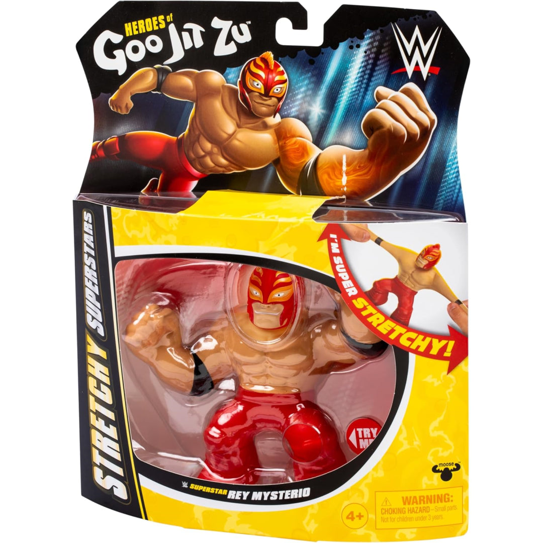 Get ready for wrestling fun with a squishable twist! Heroes of Goo Jit Zu brings WWE superstar Rey Mysterio to life in an amazingly stretchy action figure that's perfect for active play. Your little wrestling fans will love how this unique figure stretches up to three times its size and bounces right back to shape, ready for the next match!