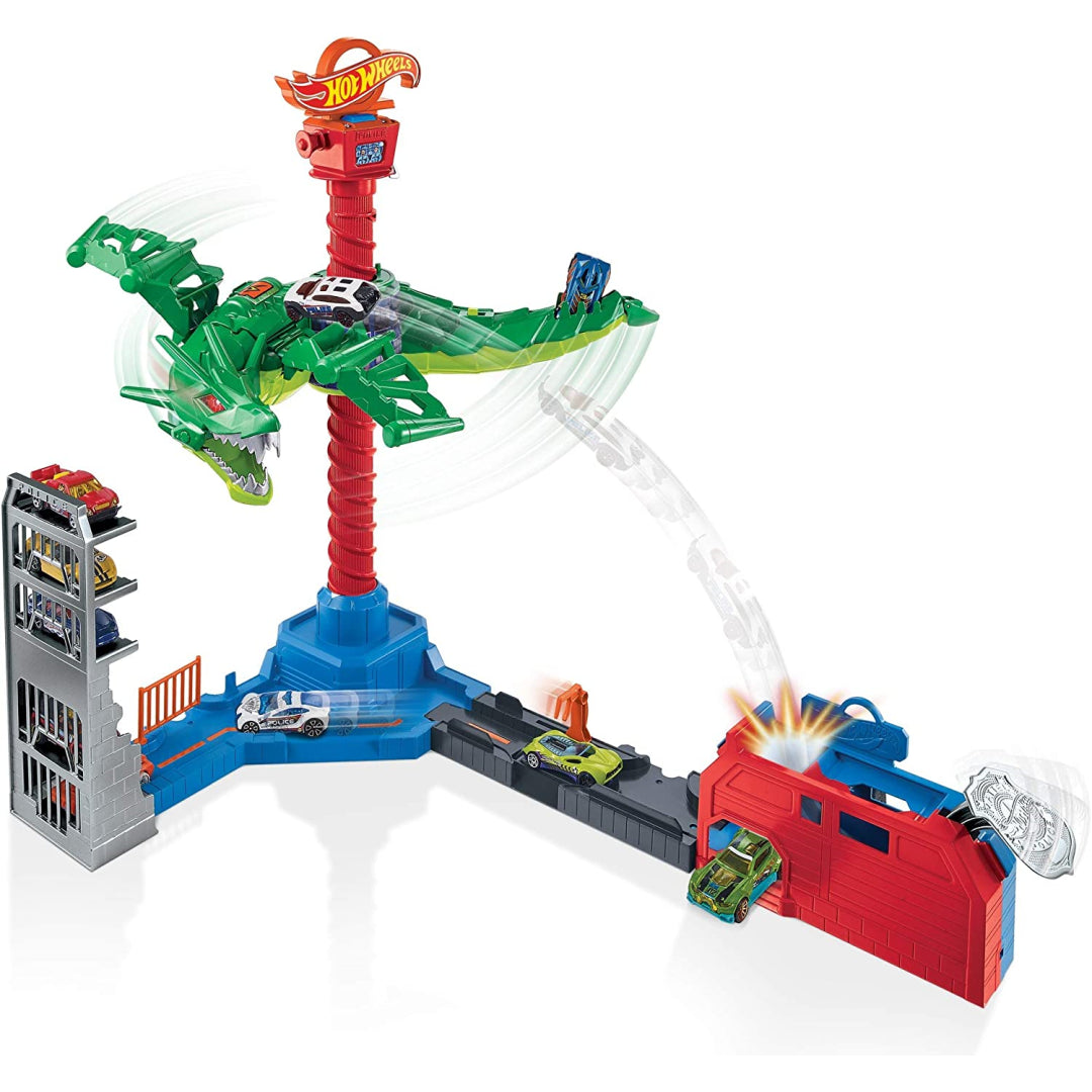 The playset features dynamic sound effects that make each play session unique and exciting. Your children can launch their Hot Wheels 1:64 scale cars at the dragon's power source in epic battles. For added excitement, vehicles can be attached to the dragon's tail or placed in its menacing jaws, creating endless storytelling possibilities.