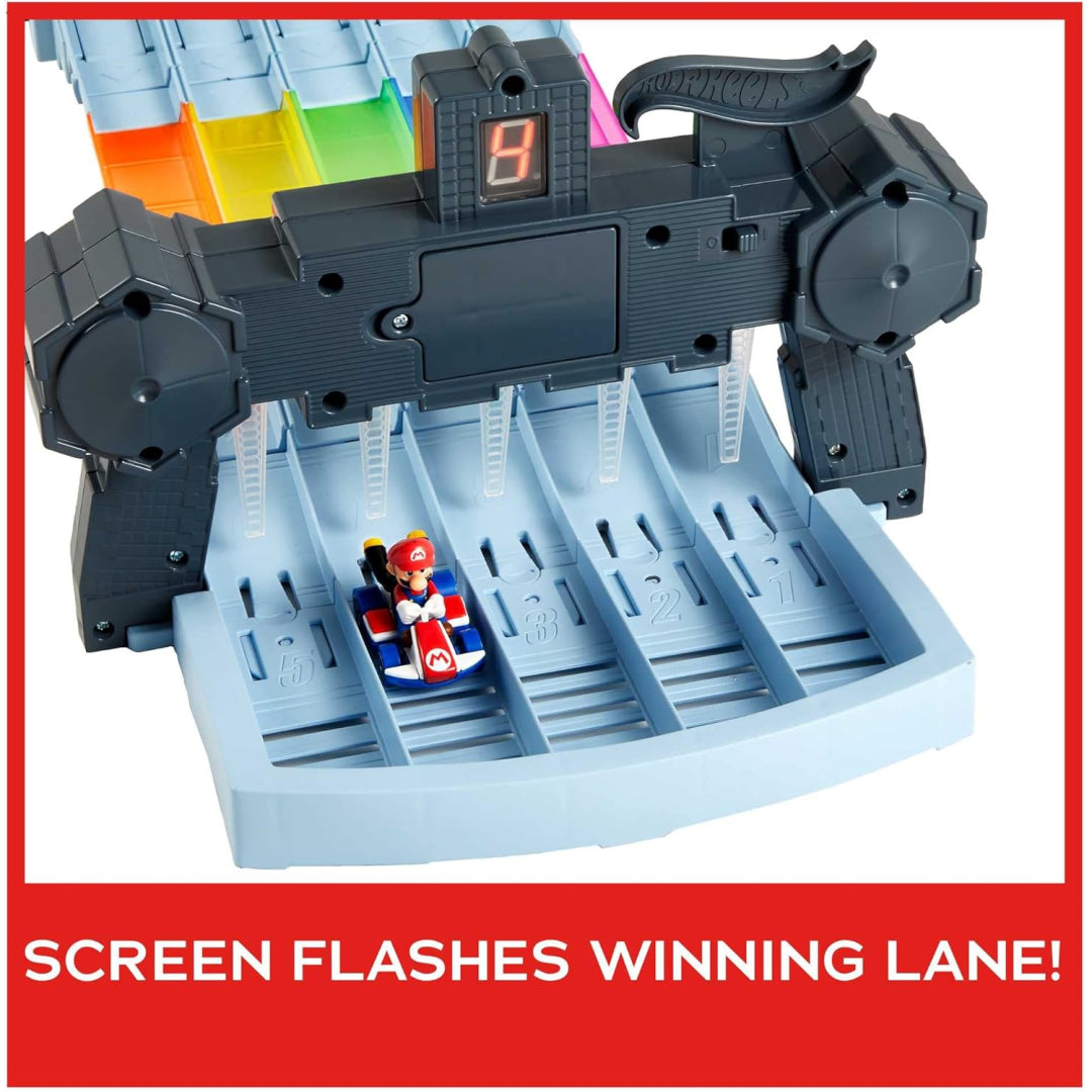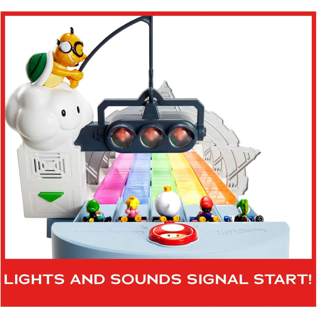 Transform your living room into the magical Rainbow Road with this incredible Hot Wheels Mario Kart track! Perfect for busy parents looking to bring extra joy without breaking the bank, this epic racing set stretches a whopping 8 feet long and soars 24 inches high. The track comes alive with lights and sounds that'll have your little ones (and you!) grinning from ear to ear.