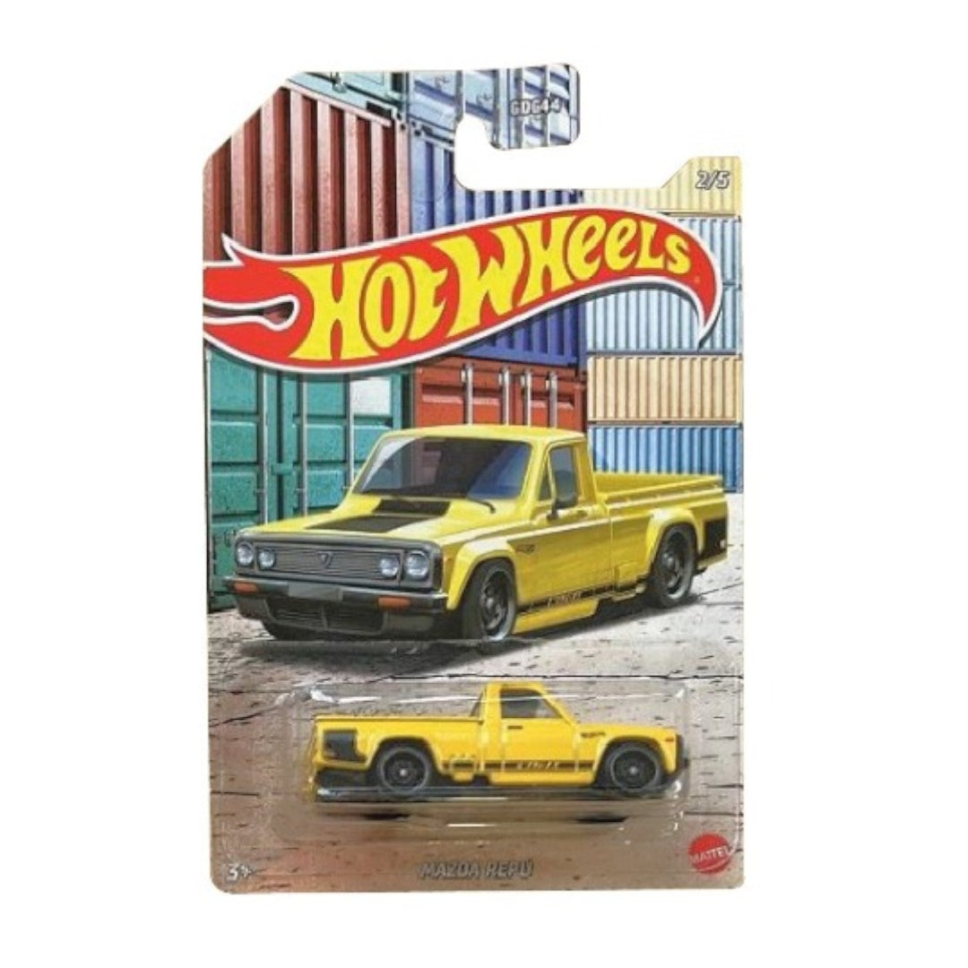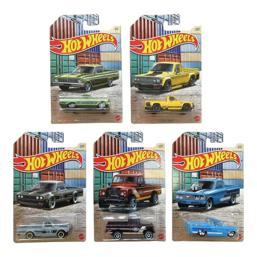 Rev up your little one's collection with this fantastic value set of 5 die-cast Hot Wheels pickup trucks! Perfect for both playtime and display, this classic vehicle bundle features iconic models including the sleek 1965 Ford Ranchero, sporty Mazda REPU, retro Datsun 620, rugged Land Rover Series III Pickup, and the eye-catching Custom 1972 Chevrolet Luv.