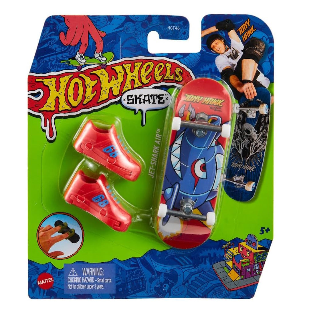 The Hot Wheels Tony Hawk Jet-Shark Air Skate Singles showcases a bold shark-themed design paired with high-performance functionality. Created in collaboration with skateboarding legend Tony Hawk, this sleek, jet-inspired board is engineered for speed, agility, and style. Ideal for executing tricks or navigating challenging lines, the Jet-Shark Air delivers a powerful and reliable ride.