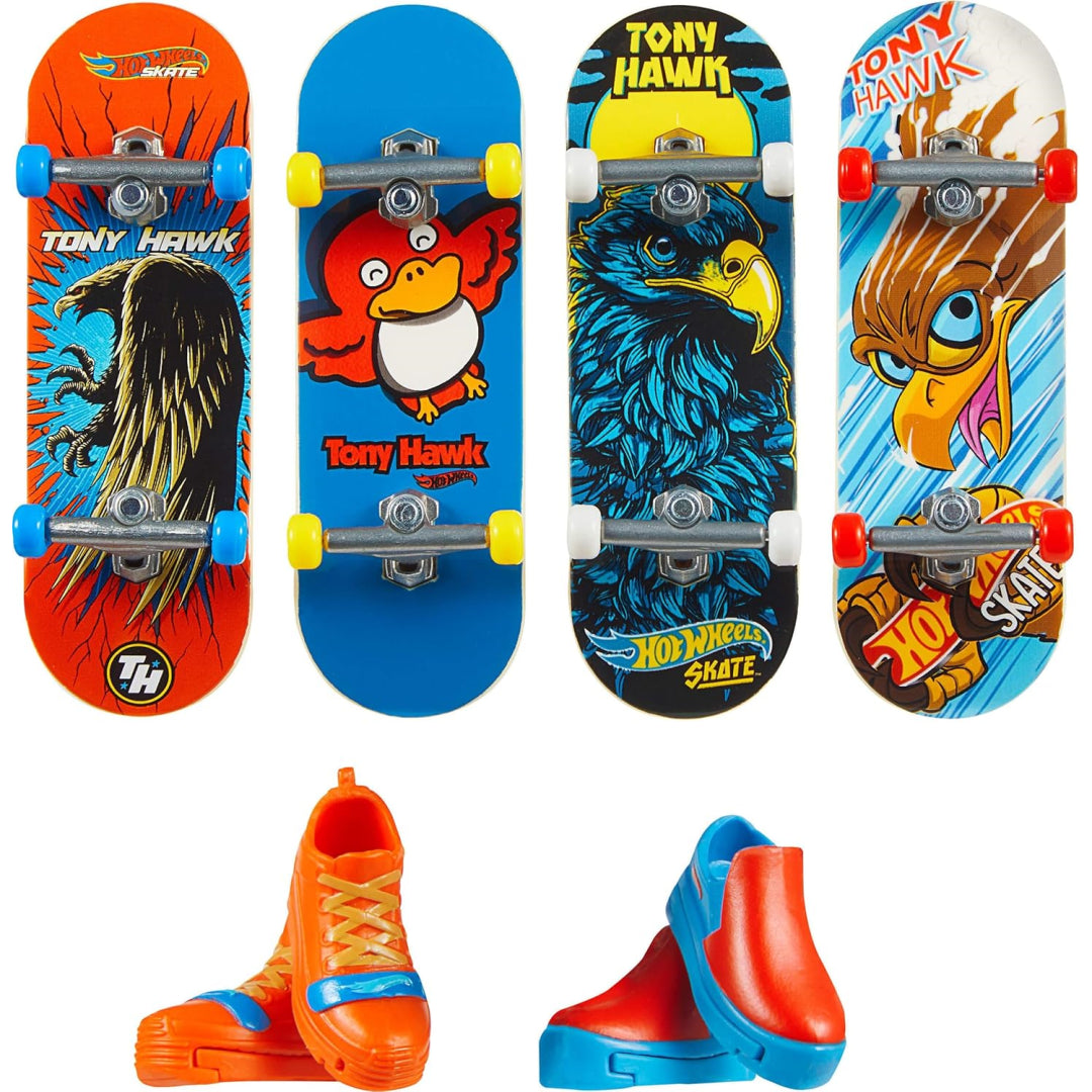 Inside, you'll find four fully assembled fingerboards, each sporting unique graphics that blend Hot Wheels' signature style with Tony Hawk's creative edge. The high-speed wheels deliver smooth performance and superior manoeuvrability, so whether your little ones are just starting out or already nailing kickflips, these boards keep up with their ambitions. And here's the clever bit: two pairs of removable mini skate shoes are included to help keep fingers secure while they learn new flips and tricks. No slipping, no frustration, just pure progress.