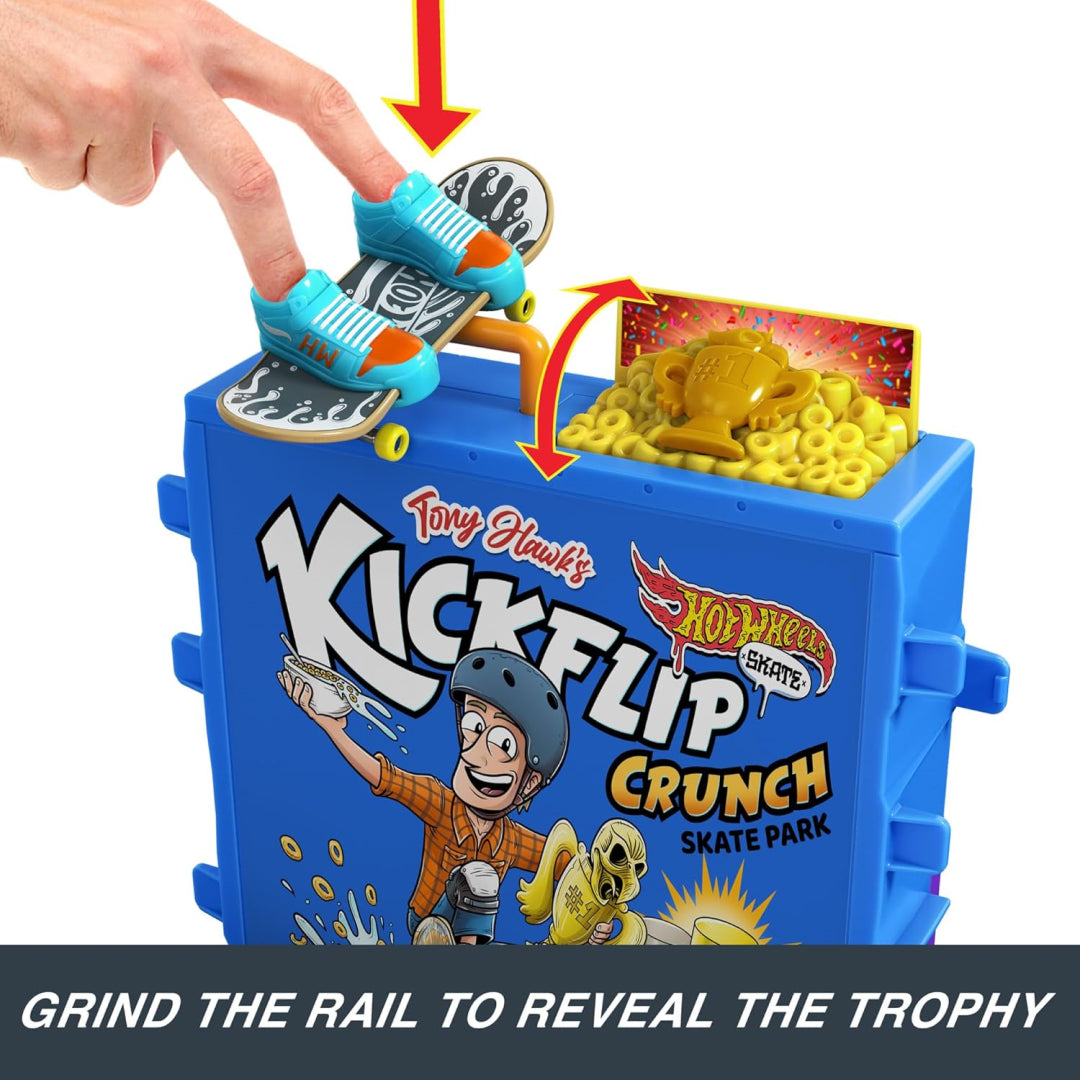 Get ready to kickstart amazing family fun with this Hot Wheels fingerboard set that brings Tony Hawk's skateboarding magic right to your home! Perfect for rainy day entertainment and skill-building play, this unique cereal bowl-themed skate set delivers incredible value with multiple play features. The creative breakfast-inspired ramp setup includes a surprise trophy-revealing grind rail that'll keep kids (and grown-ups!) entertained for hours.