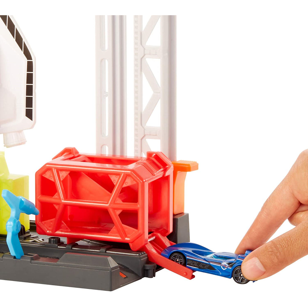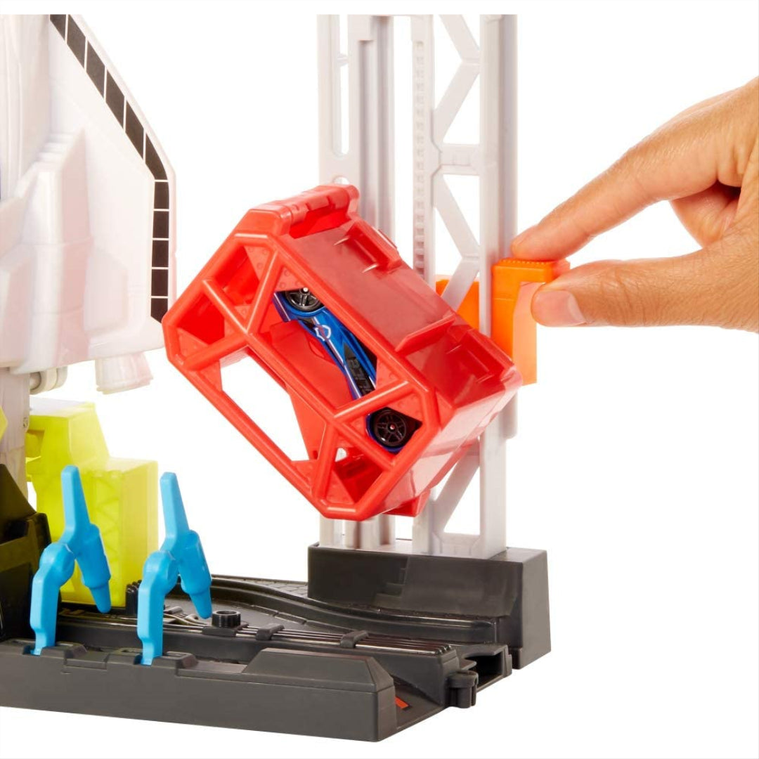 With the Hot Wheels Super Space Shuttle playset, you can go on an incredible journey to the stars! Before getting into the g-force cab for space training, the kids test everything with toy robot arms to make sure everything is working properly. The stand launcher directs automobiles through a loop and onto the shuttle, which takes them on an instantaneous journey to unexplored territory. As soon as the shuttle returns, it ejects the vehicle onto a ramp that takes passengers to the next mission. This action-packed kit contains one Hot Wheels vehicle in 1:64 scale and is appropriate for children between the ages of four and eight. Colours and decorations are subject to change.