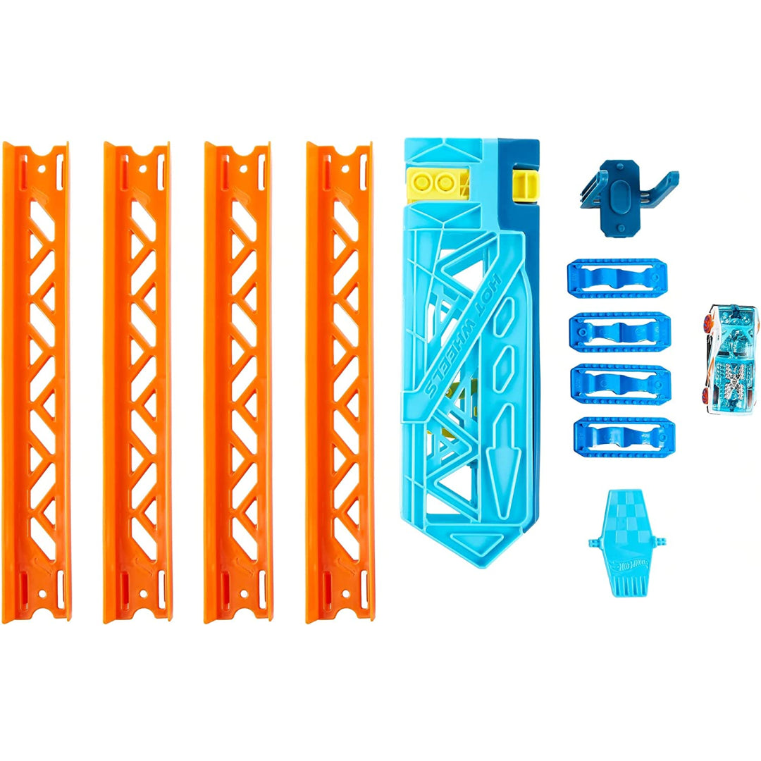 The genius is in the adjustable launcher that fits anywhere on a straight track. With just a push of a button, your kids can experiment with different positions to create the perfect power boost. The rubber-band loaded kicker adds an unexpected burst of speed, sending cars zooming into their next stunt. Suitable for children aged 6+, this set delivers hours of experimental play that's both fun and engaging.