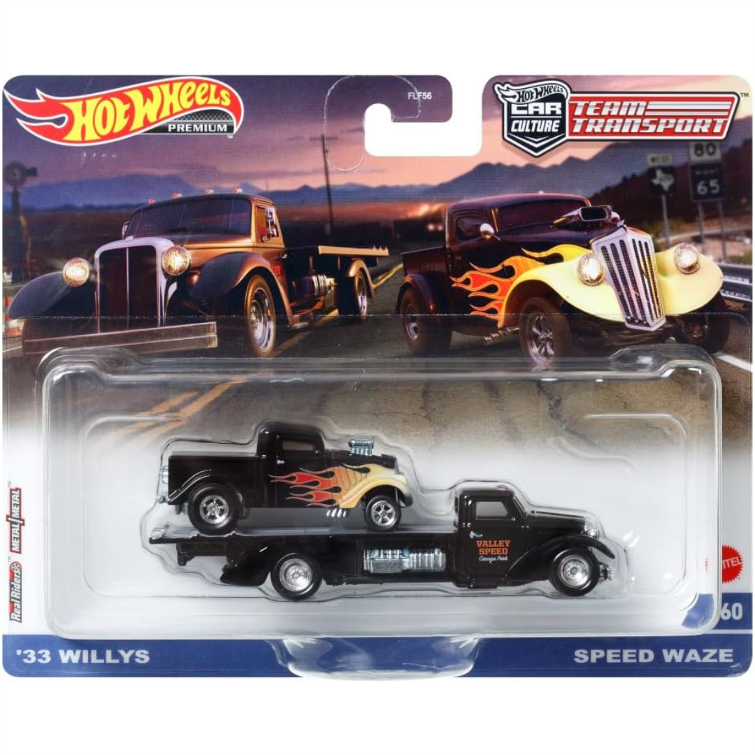 Rev up your little one's imagination with this awesome Hot Wheels Team Transport duo! Perfect for budget-conscious parents who want to give their kids something special, this set features a classic 1933 Willys car and its matching transport truck at 1:64 scale. These beautifully detailed vehicles celebrate racing heritage and automotive culture, making them ideal for both playtime and display.