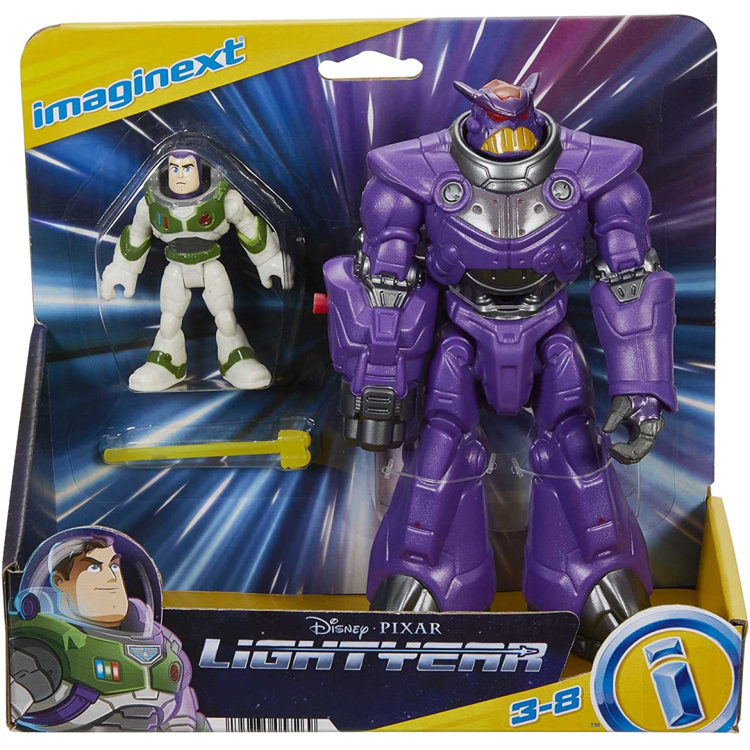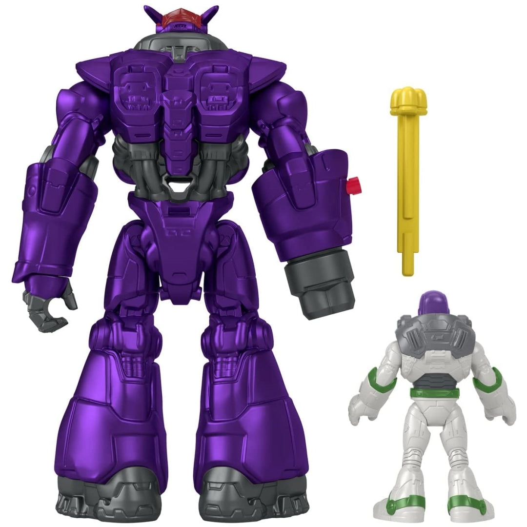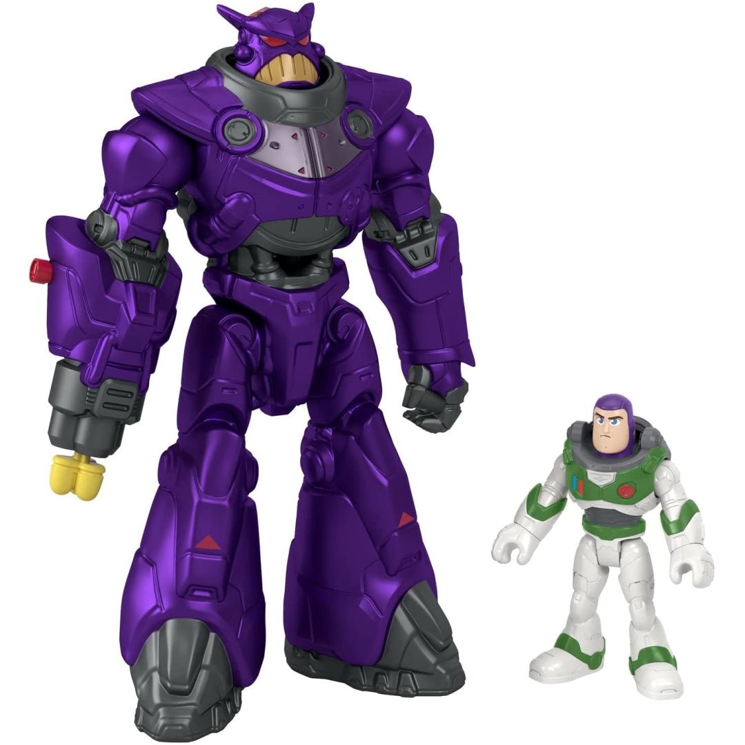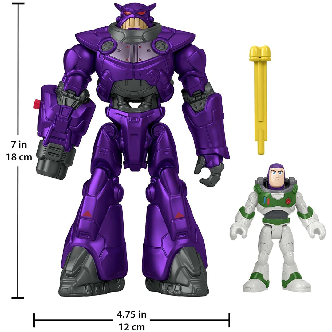 With this fantastic Imaginext figure set depicting the wicked Zurg and Buzz Lightyear, fans can recreate the interplanetary fight action of Disney and Pixar's Lightyear (Space Ranger Alpha). The Battle Blast Zurg figure is 7 inches tall and has spectacular projectile launching action in his arm that is triggered with the push of a button, much like the character in the film. Will Buzz Lightyear be able to overcome Zurg and return to mission control? That's up to your aspiring Space Ranger to decide!