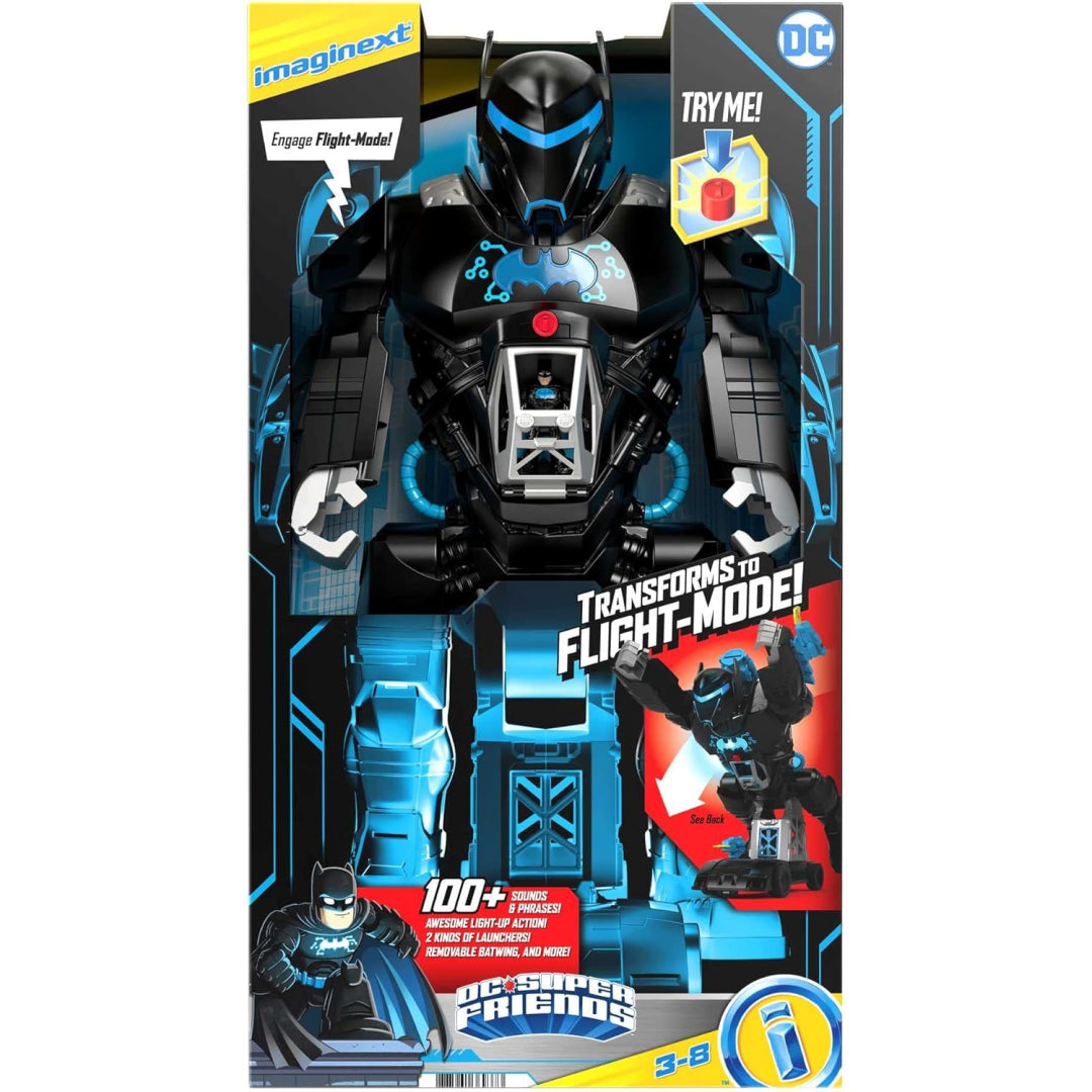 The playset comes with a prison cell, several missile launchers, and a control centre that lights up and looks like Batman's cockpit. The robot enters "flight mode" when the power pad is switched. To move the arms forward and roll off, press the starter. Contains two projectile launchers, five projectiles, one Batwing, and a Batman figure. Ideal for kids from 3 to 8 years old. Includes one Batwing, two projectile launchers, seven projectiles, and a Batman figure. for children in preschool, aged 3 to 8. The playset comes with a light-up control panel including Batman's cockpit, a jail cell, and many missile launchers. Squeeze the trigger to propel the arms forward and roll along to "blast off" for action after turning the Power Pad into "flight" mode. Place Batman in the cockpit and hit the button to make the figure's chest light up.