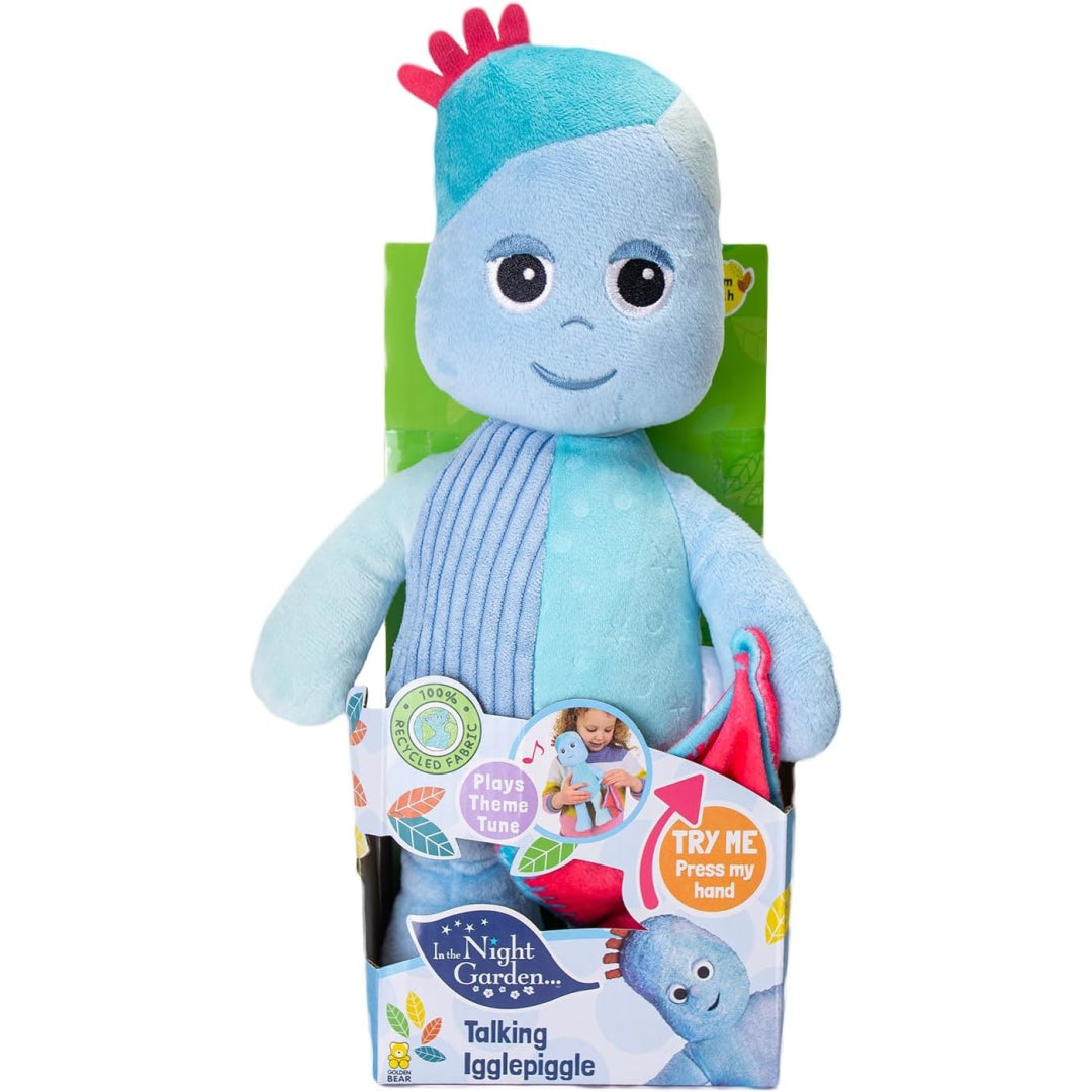 Make bedtime magical with the In the Night Garden Talking Igglepiggle Soft Plush! This super-snuggly companion is perfect for little ones who love their evening CBeebies adventures. Press Igglepiggle's hand to hear the familiar theme tune and character sounds that'll have your toddler giggling with joy.