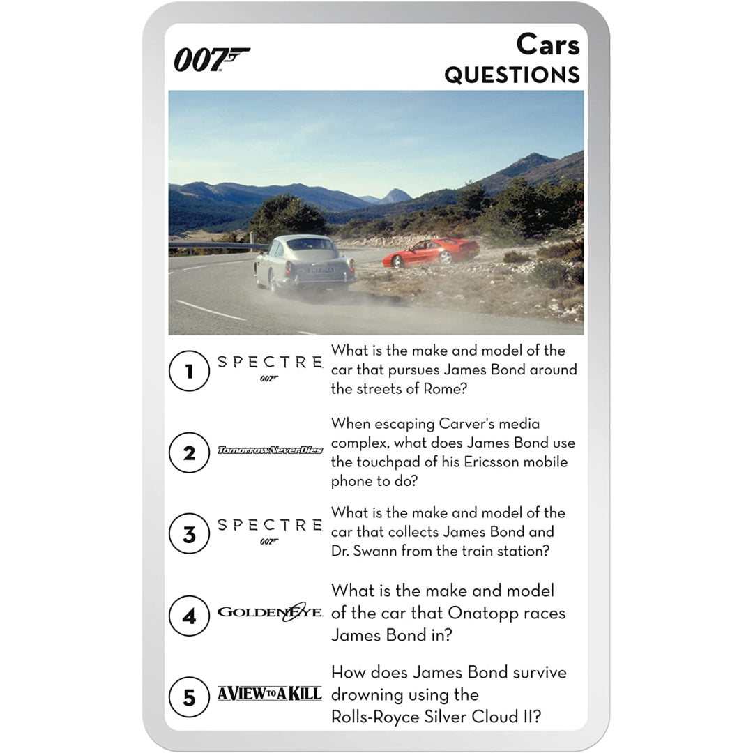 Mister Bond, you're in for some covert fun with a Top Trumps twist. This game is a quiz. Players like this entertaining and educative card game because it allows them to relive their favourite 007 events and statements.