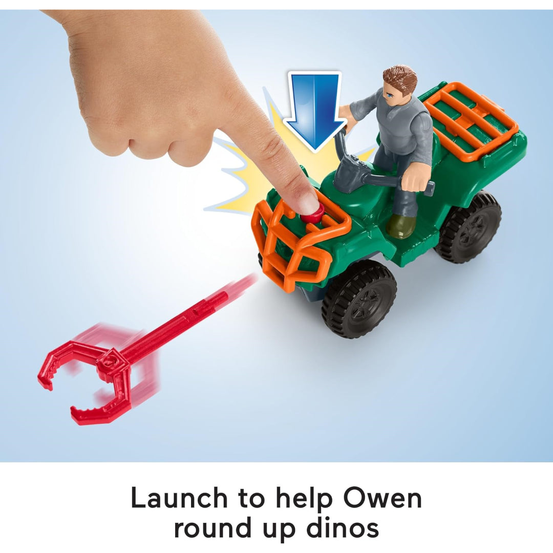 This exciting playset features a research facility with loads of moving parts to keep curious minds engaged. Your kids can spin the lab's turbine using the Power Pad, pop characters into the containment chamber, and zoom around with the push-along ATV complete with grabber claw. The set comes packed with movie favourites including Owen Grady, Maisie Lockwood, and Dr Alan Grant figures, plus detailed Therizinosaurus and Dimetrodon dinosaurs for ultimate play value.