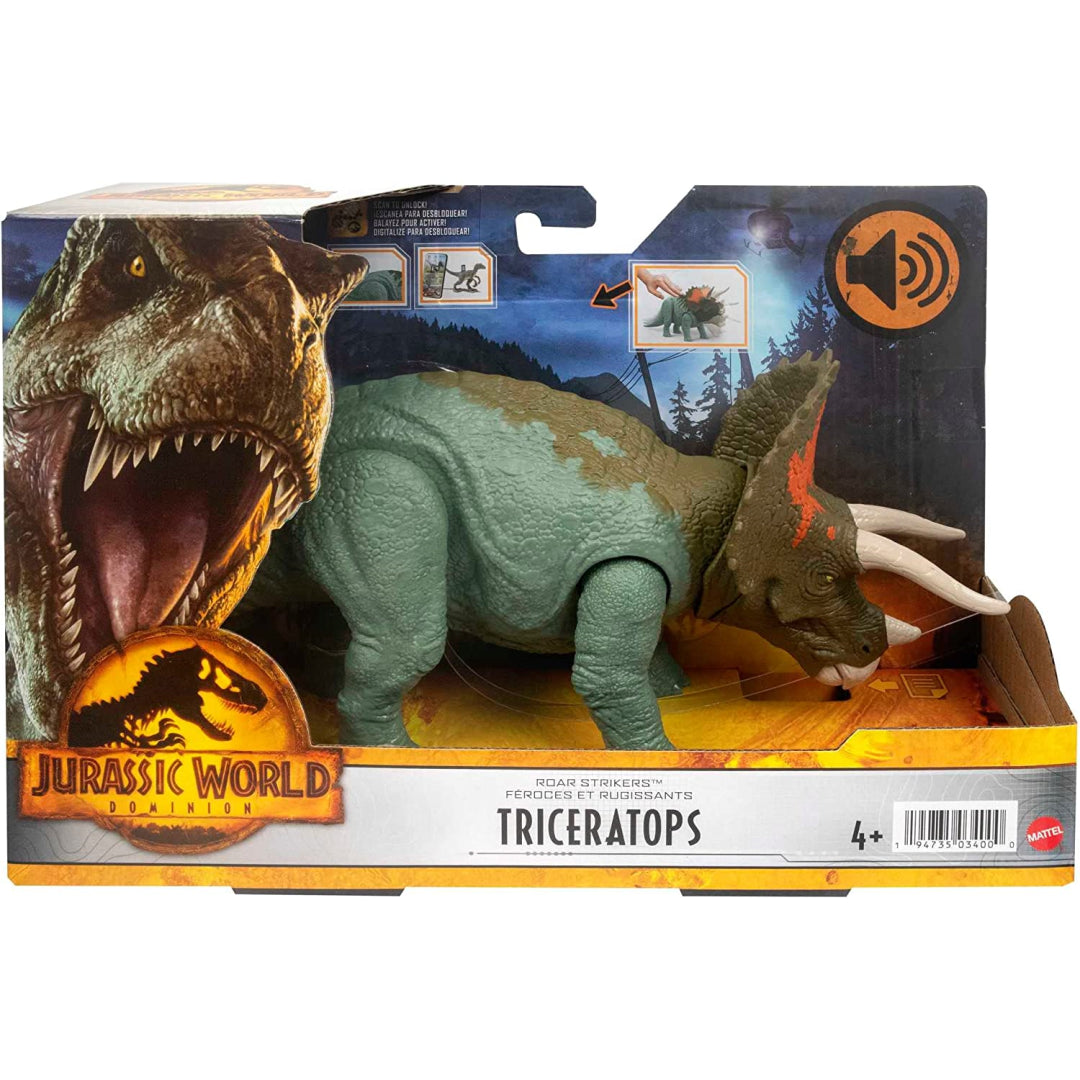 Get ready for epic prehistoric play with this incredible Jurassic World Triceratops! At a whopping 13 inches long, this mighty dino brings movie magic right to your playroom. Perfect for budding palaeontologists, this action-packed figure comes alive with realistic ROARING sounds and HEAD BUTTING action - just push down on the hip section and watch the excitement unfold!
