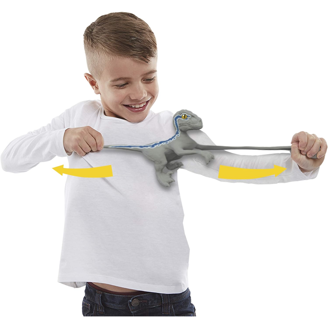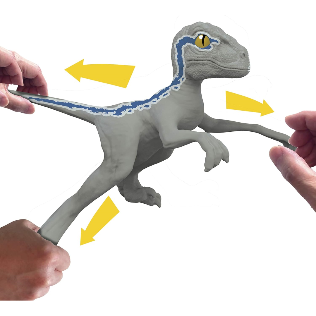 Participate in Jurassic World action and adventure with the Velociraptor Blue-inspired Stretch Raptor toy. Stretch, pull, and tie it in knots; release, and watch it use super strength to return to its original shape. Enjoy super stretchy fun!