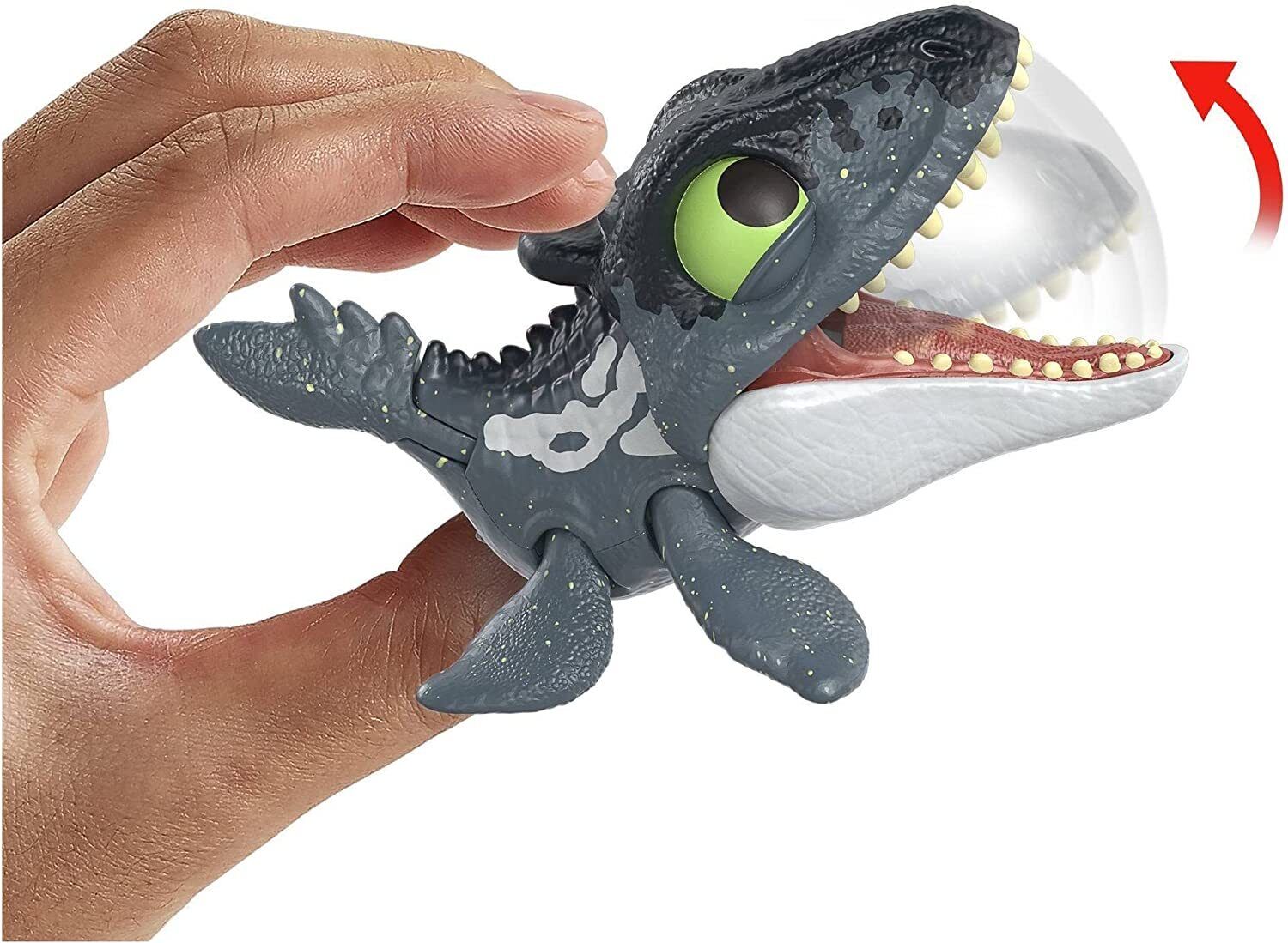 Part of the beloved Jurassic World collection, this bite-sized beast brings movie magic to everyday play. The Mosasaurus features authentic details in a cute, compact style that makes it ideal for on-the-go entertainment. Simply snap the mouth to attach and let the adventure begin!