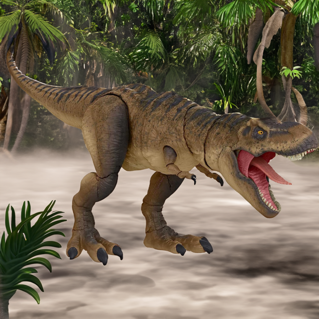 This premium T. rex figure has detailed design features collectors will appreciate, including red glass eyes, stretchable jaw tendons and posable tongue, ensuring dramatic and unique displays.