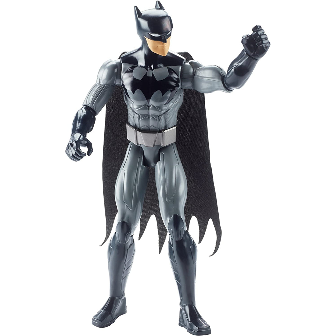 Let your little hero's imagination soar with this impressive 30cm Batman figure from Justice League. Perfect for creating epic adventures at home or displaying proudly on a shelf, this Batman figure features a sleek grey and black Batsuit complete with a flowing fabric cape and modern cowl design.