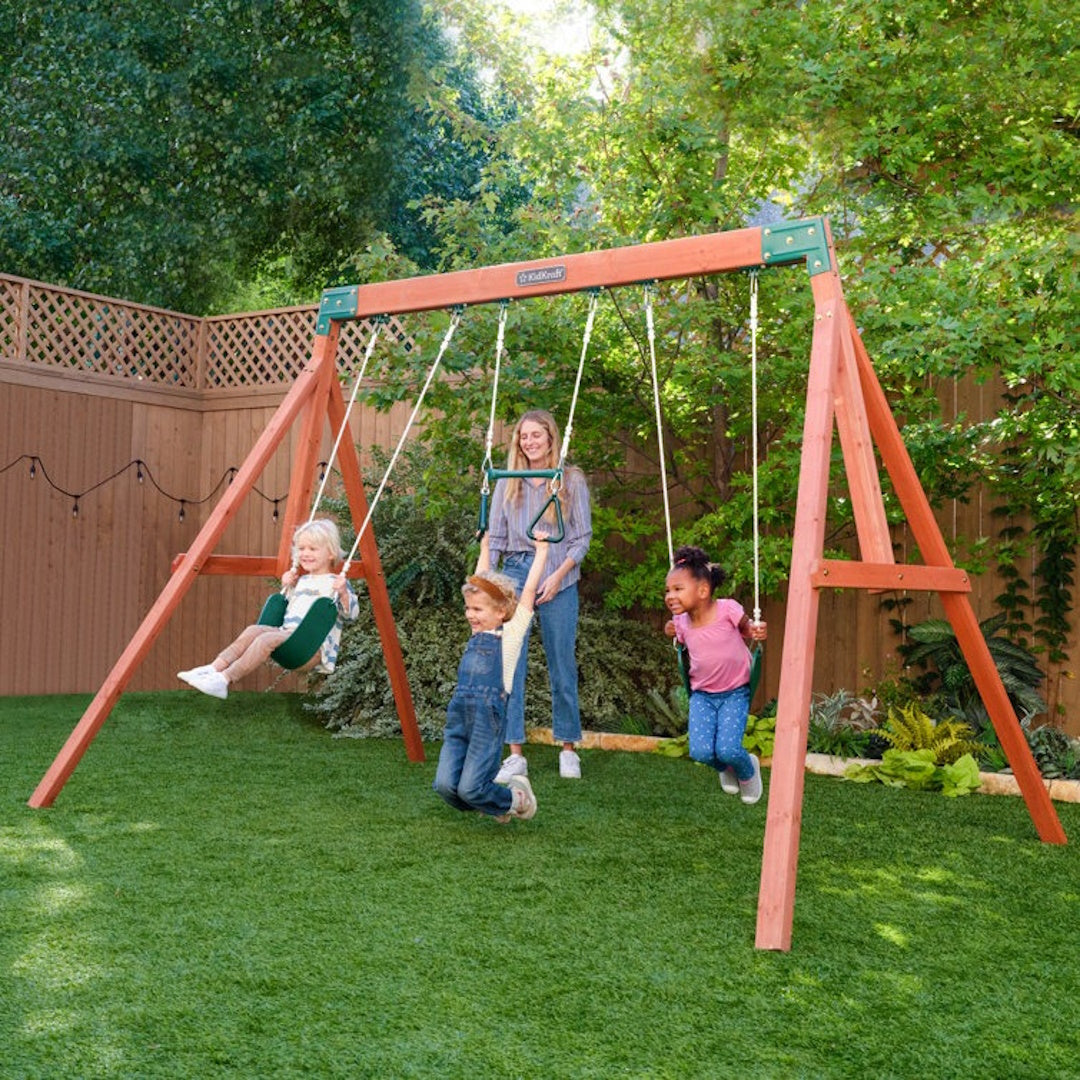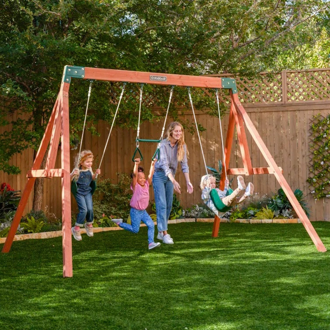 Get ready for endless backyard adventures with the KidKraft Aviator Swing Set! Perfect for busy families looking to maximise play value, this compact wooden swing set packs a punch without breaking the bank. Your little ones will absolutely love zooming through the air on the two belt swings, while the acrobar adds an extra dash of excitement for those brave young adventurers.